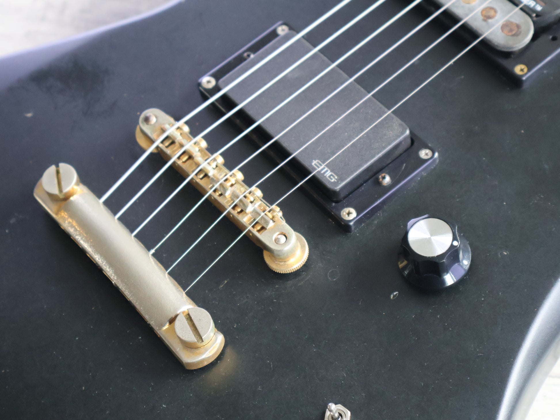 1992 Burny Hide X Japan MG-125S Mockingbird w/Sustainer (Matte Black)