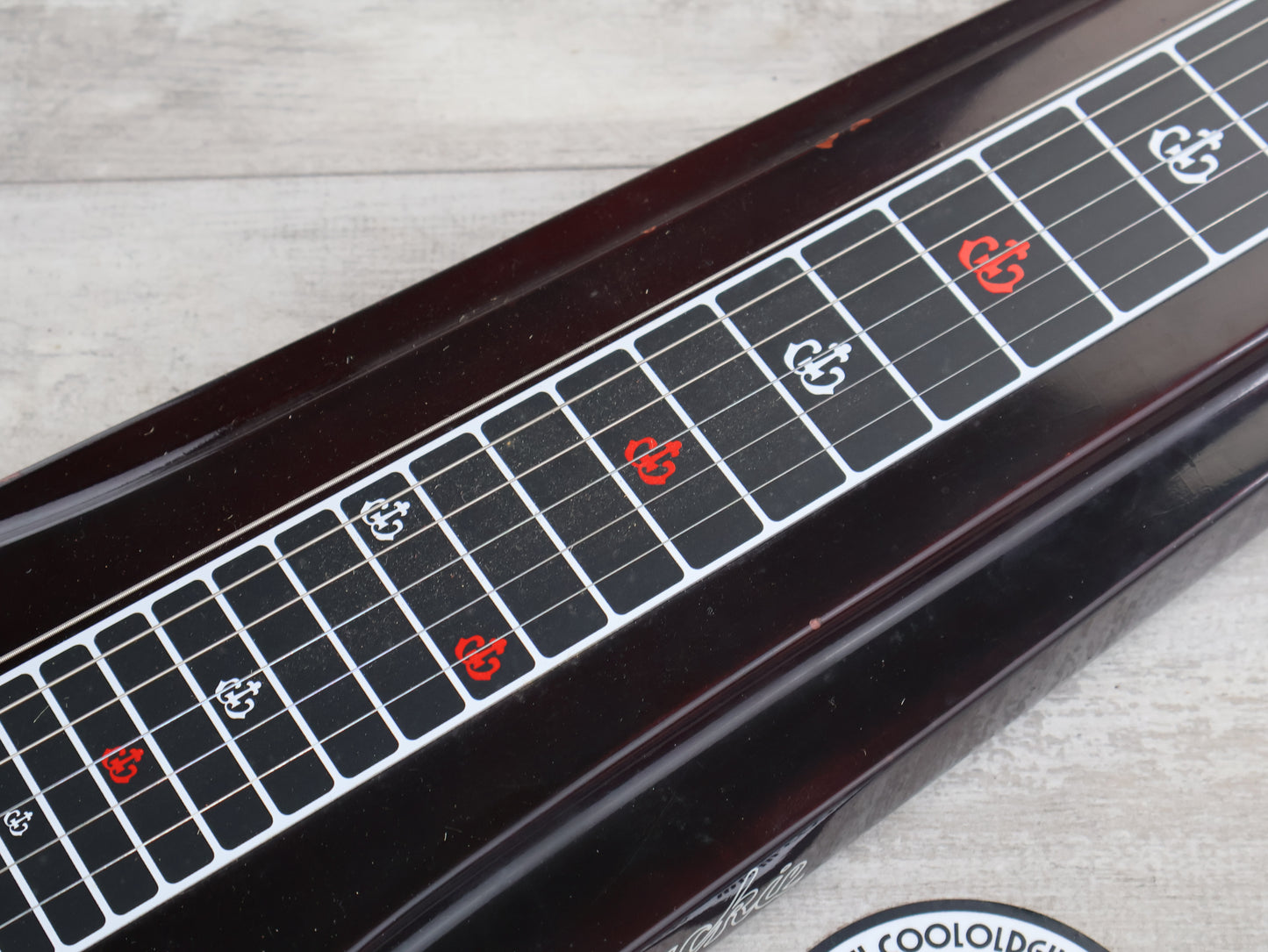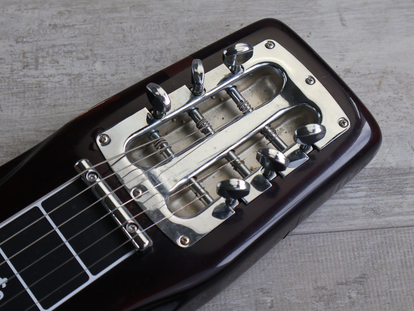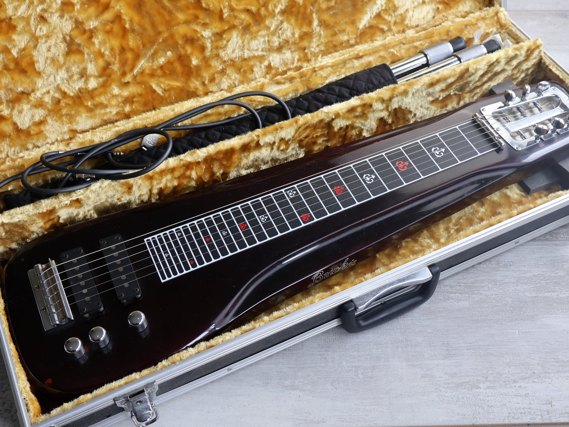 Made in Japan by luthier Yas Kamiya, who worked at the Sho-Bud factory in Nashville in the 1970s for 12 years before returning to Japan in 1986 to make Canopus Hawaiian steel guitars in Shimo-Kitazawa. Tuned to Open C and in good used condition as pictured with basic wear. Includes the original legs and hardcase as pictured.