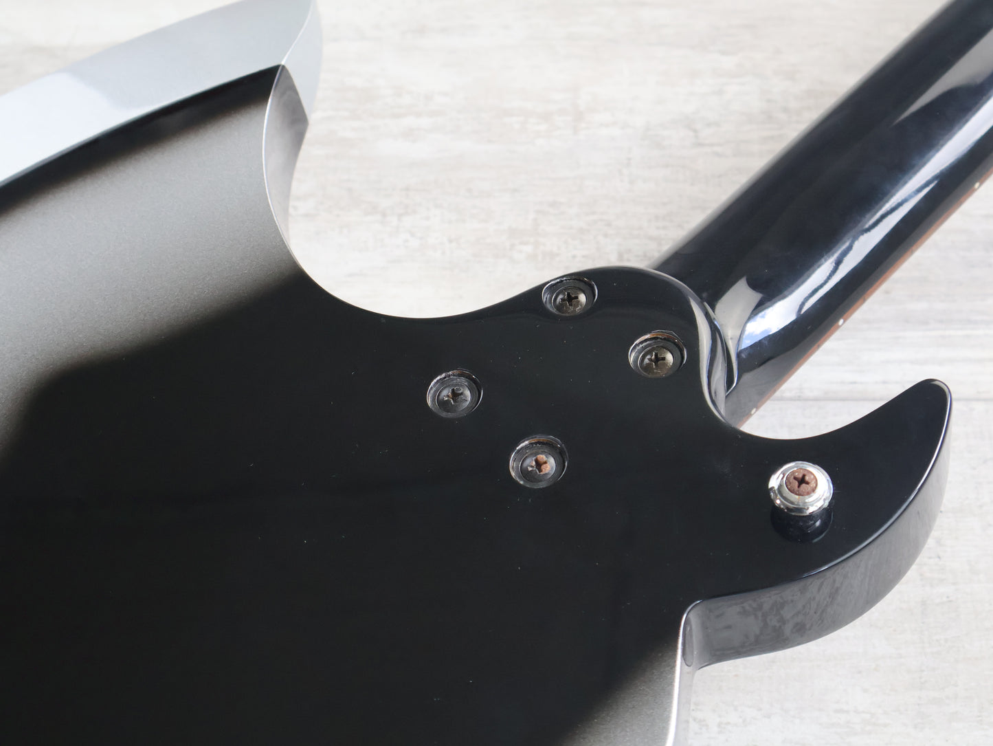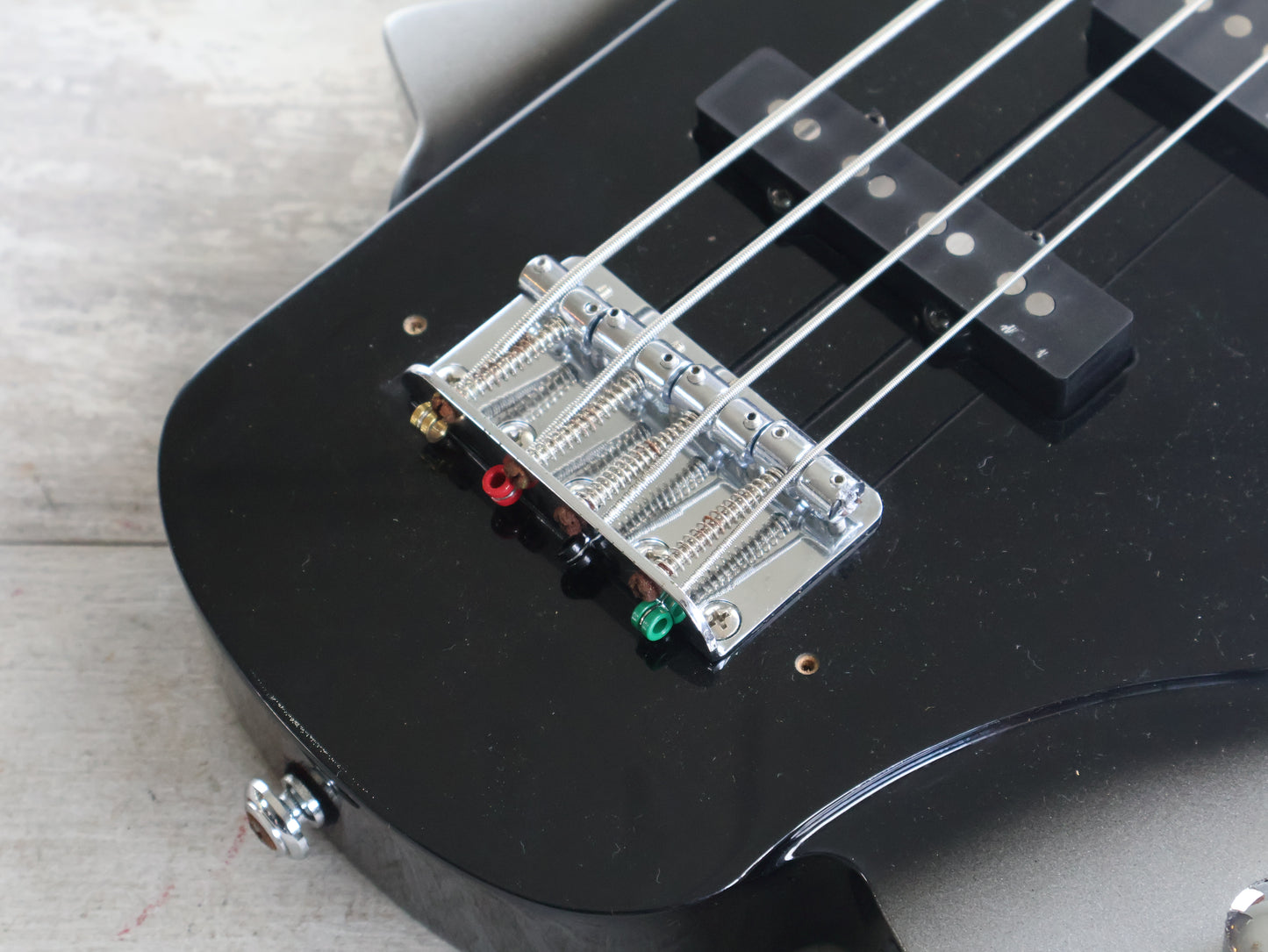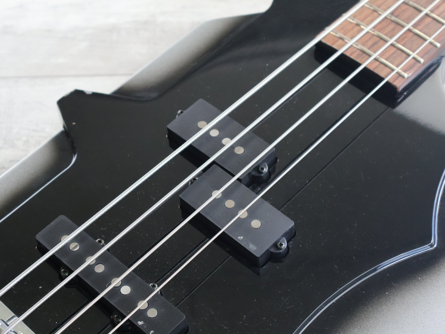 At the heart of the axe-shaped Simmons bass is its electronics system. The Mighty Mite MMJB-R and MMPB-4 pickups produce clear, bright tone, with low noise. Controls include Volume, Tone, and a toggle switch to select the bridge or mid pickups, so you can dial in your ultimate demon tone.