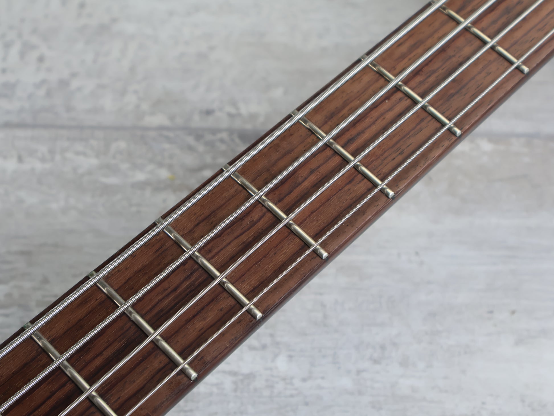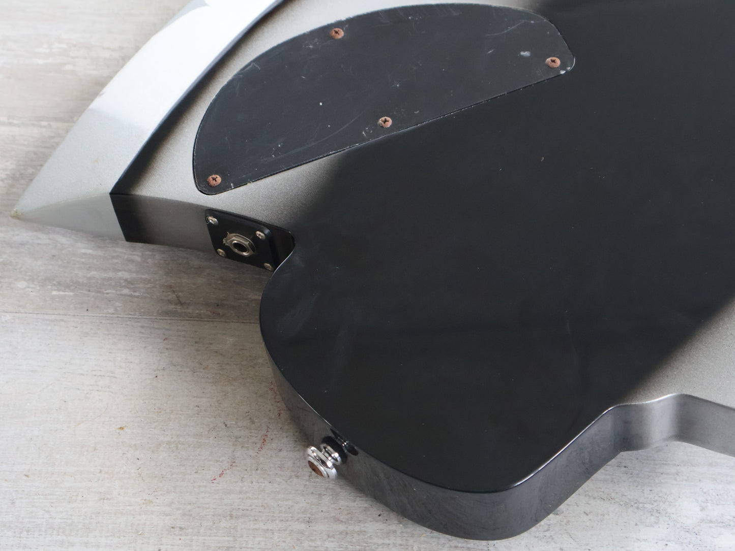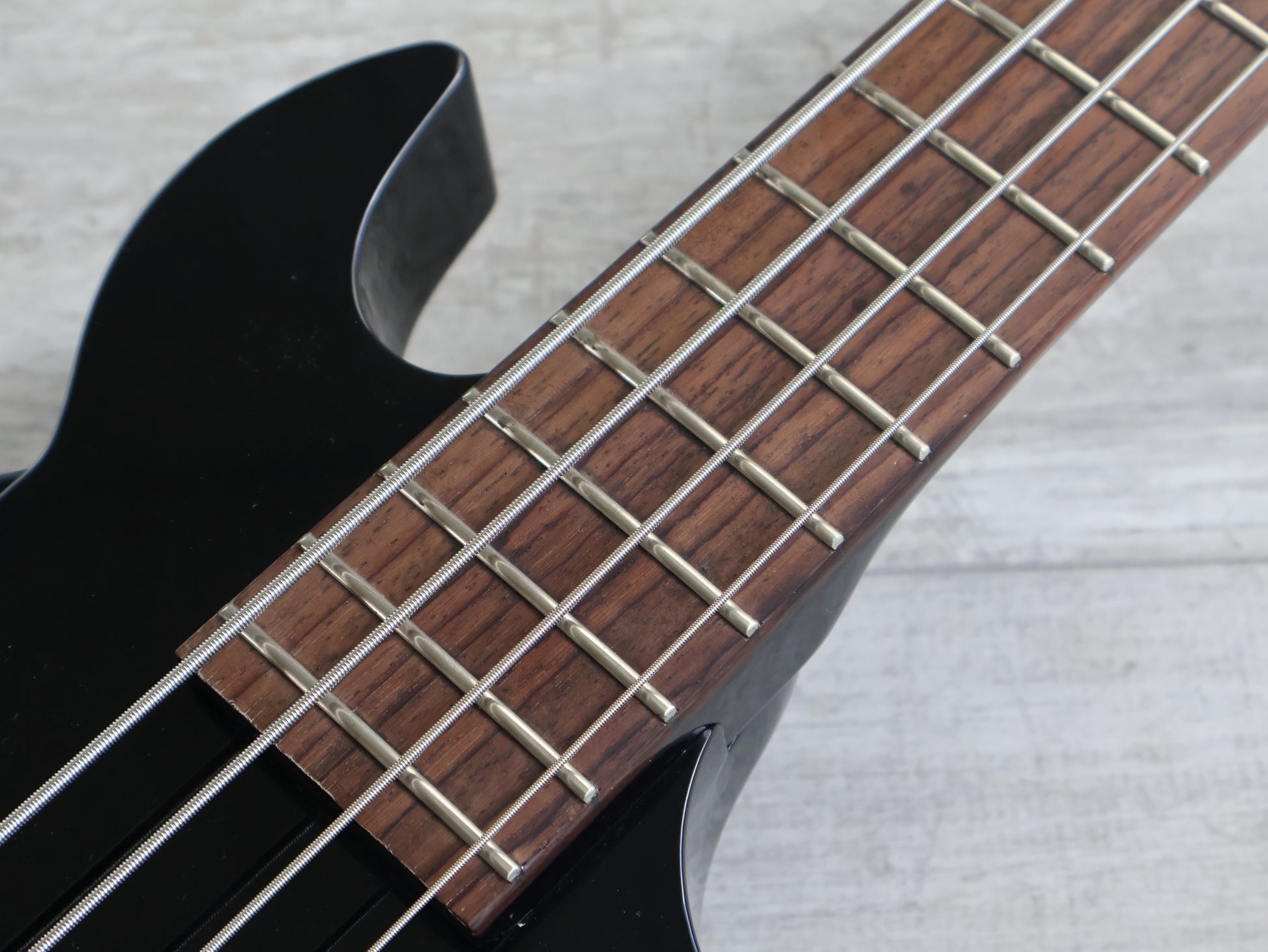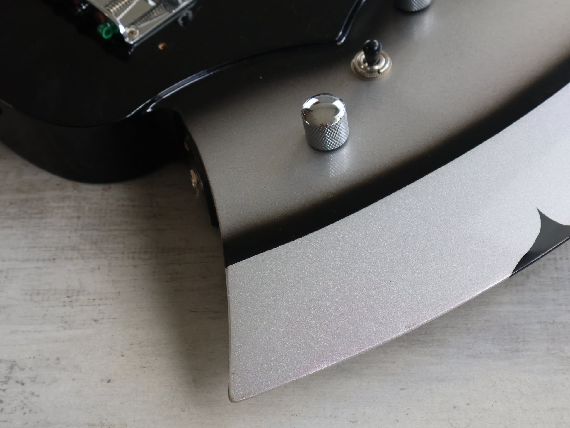 At the heart of the axe-shaped Simmons bass is its electronics system. The Mighty Mite MMJB-R and MMPB-4 pickups produce clear, bright tone, with low noise. Controls include Volume, Tone, and a toggle switch to select the bridge or mid pickups, so you can dial in your ultimate demon tone.