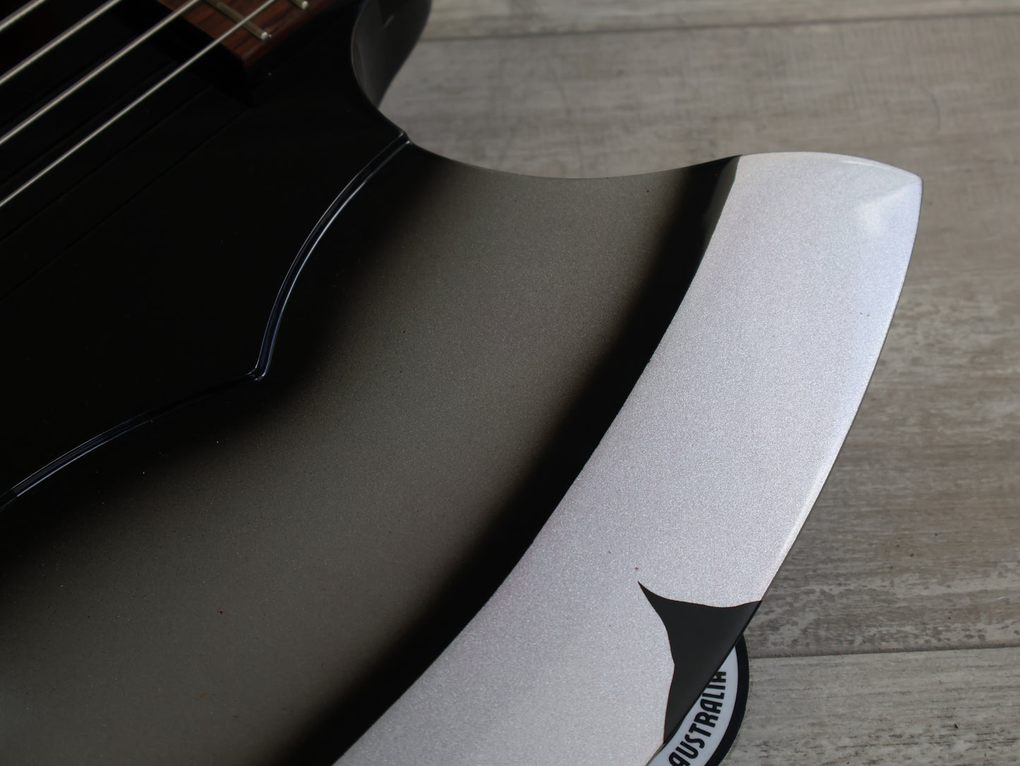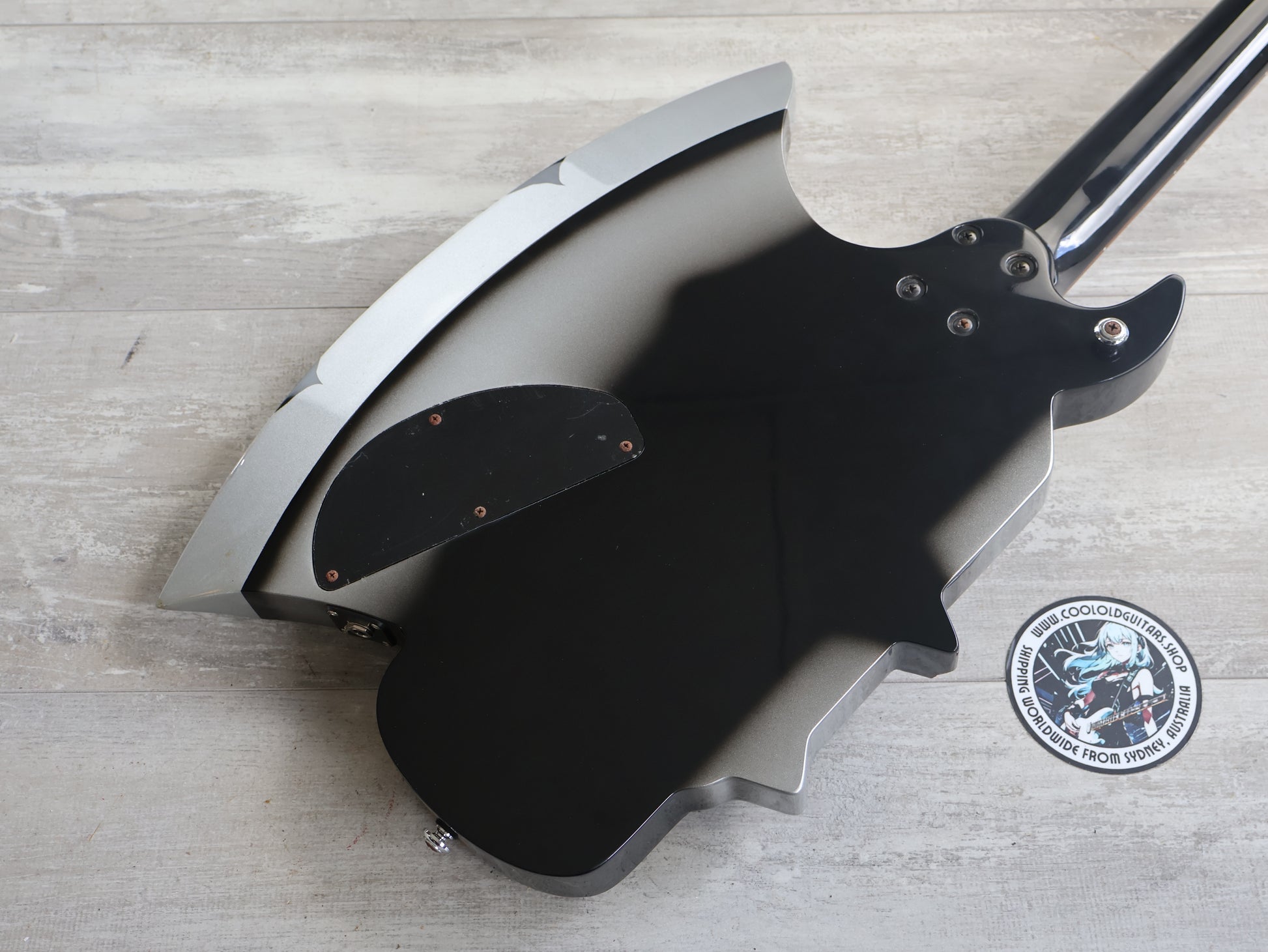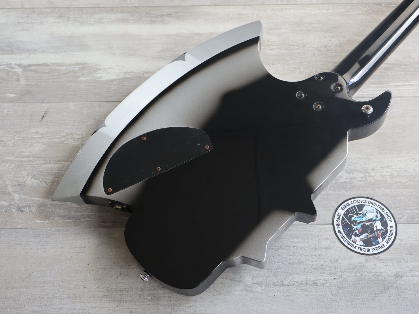 The axe-shape body has the same style and flare as the demon's own, complete with a painted silver blade on a shiny black, insane-looking axe-head. The bass guitar's mahogany body produces crisp tone with plenty of heavy bass for that signature Detroit Rock City sound. The rosewood fretboard and EB6 4-string bridge add clarity to the Gene Simmons Axe, so you get definition with each note you strike.