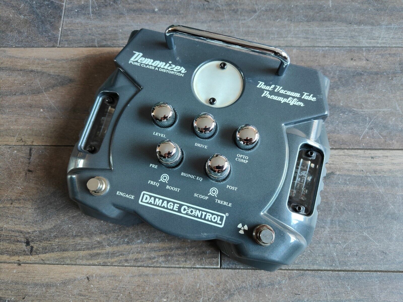 Built around a dual 12AX7 preamp design, the Damage Control Demonizer Distortion Preamp Pedal reacts like a full-blown stack to deliver thick, chunky, high-gain tube tones. With knobs that shape amplitude and frequency, the special Bionic EQ allows massive tone shaping in both the pre- and post-tube stages. The Demonizer also features a revolutionary magic-eye biofeedback meter that organically reacts to your performance levels. Direct recording into your console for state-of-the -art, all tube amp sound and feel. Use it in front of an amp, and add an additional hot-rodded amp channel!