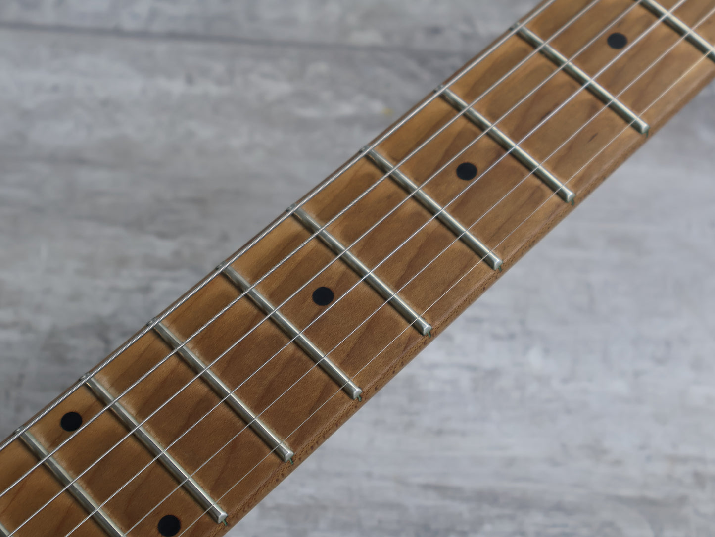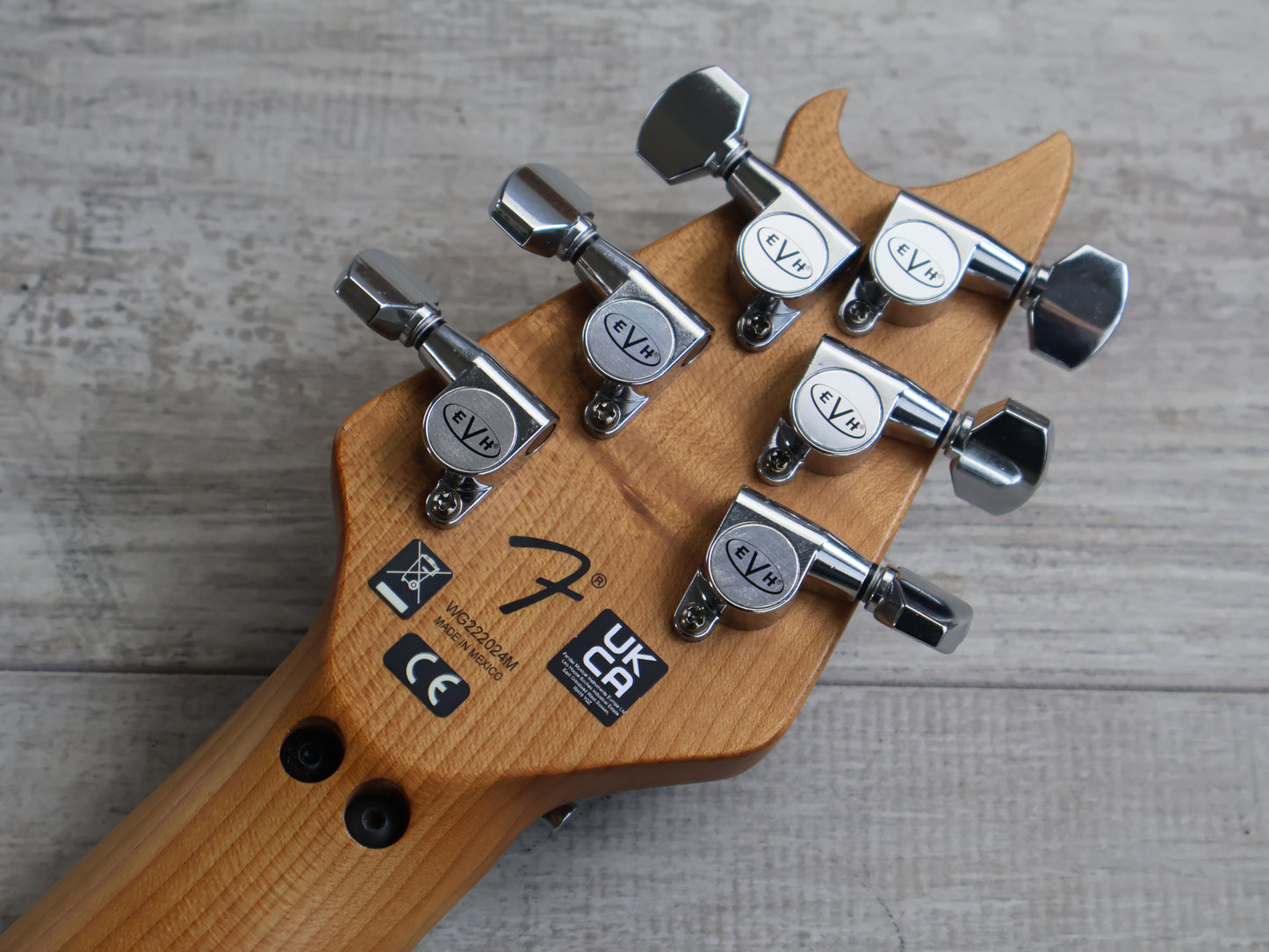 With specs favoured by the man himself, the EVH Wolfgang WG Special QM, finished in Charcoal Burst, is sure to impress. A one-piece quartersawn bolt-on neck, with graphite reinforcement rods, combined with an arched Quilt Maple-topped basswood body gives you tone to spare, while you shred for days in comfort. The neck is carved and rolled to Van Halen's exact specifications and finished in a hand-rubbed urethane. A 22 jumbo-fret 12"-16" compound radius fingerboard maximises playability. Two flagship model custom-designed black direct mounted EVH Wolfgang Alnico II humbuckers, a Floyd Rose Locking trem and R2 locking nut give you dives dripping with tone and sustain. Plus the EVH D-Tuna lets you switch between drop and standard tuning with the flick of a finger. The volume knob with treble bleed circuit has a 500K EVH Bourns low friction pot for smooth swells and a tone control knob with a 250K Bourns high friction tone pot that prevents accidental tone shifting.