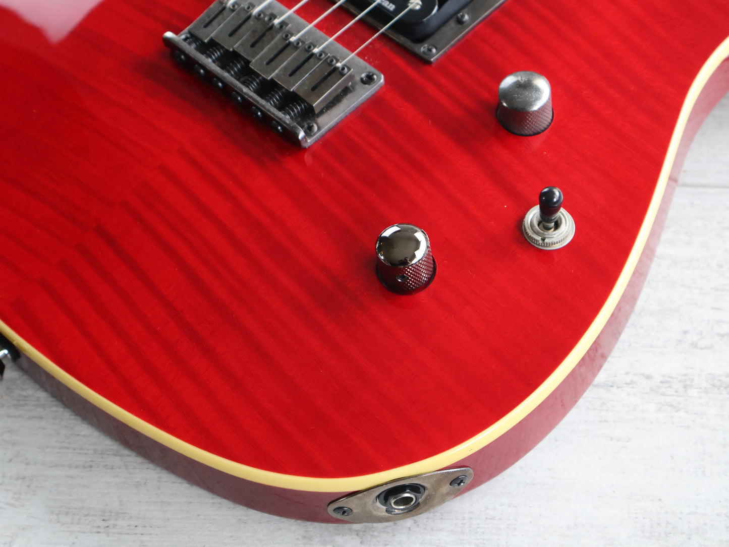 - Mahogany body topped with eye-popping flame maple delivers a muscular-sounding resonant bite