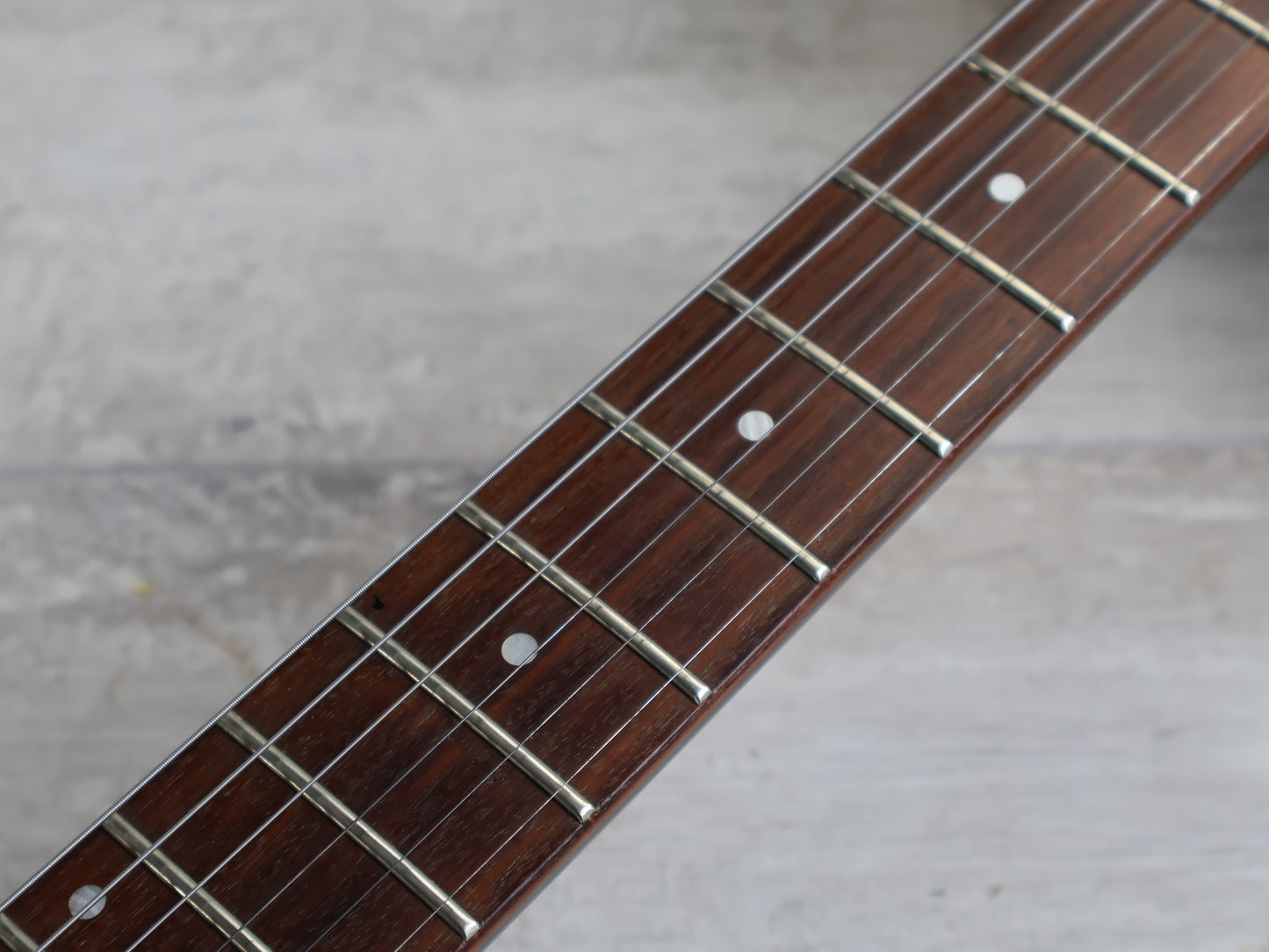 The tremolo variant of the Hohner Headless range, this G2 is in good used condition as pictured with a functional truss and plenty of life in the frets. The electronics were flushed and sound great and it appears to be all original. Full specs below.