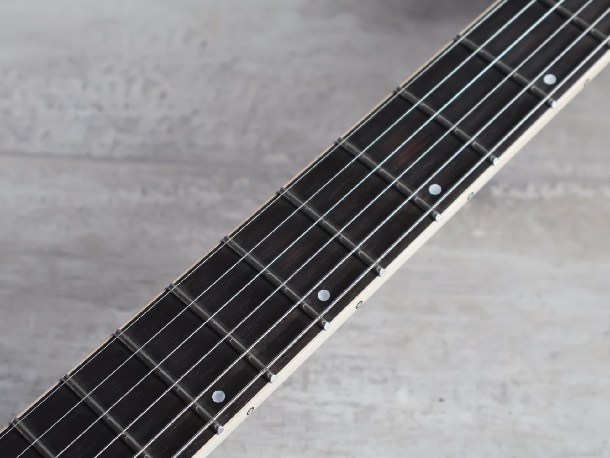 The RG5000s feature Stainless Steel frets for a bright tone, long durability and smoothness, a rigid 5-piece Maple/Wenge neck; a beautiful wood grain fretboard, Made-in-Japan Luminlay side dots and the most cutting-edge pickups. The RG5320L-CSW has a beautiful color contrast between the Cosmic Shadow finish on the top and the Natural finish on the body sides and back. This RG5320 features a Macassar Ebony fretboard and African Mahogany body. The RG5320’s Super Wizard HP neck and the meticulous Prestige fret edge treatment provide extra-smooth playing.