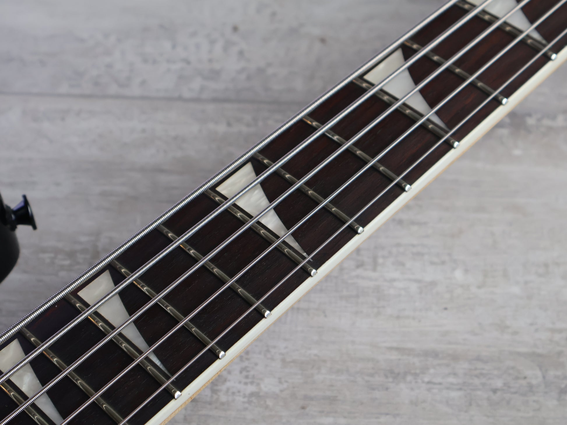 The five-string Concert Bass JS3VQ is a 35”-scale model featuring a lightweight and resonant poplar body with an elegant quilt maple top, fully bound bolt-on maple neck with graphite reinforcement and scarf joint, and a 12”-16” compound radius amaranth fingerboard with 24 jumbo frets and classic sharkfin inlays.