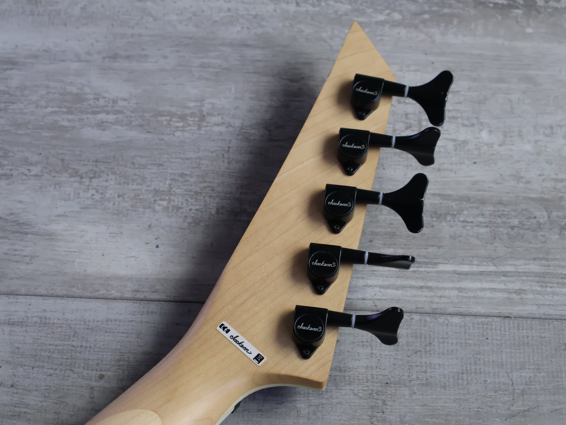 A thunderous bass loaded with vibe and value, the JS3VQ is available in a striking Cherry Burst, Transparent Black Burst or Transparent Red Burst finish with black hardware and a Jackson pointed 5-in-line headstock.