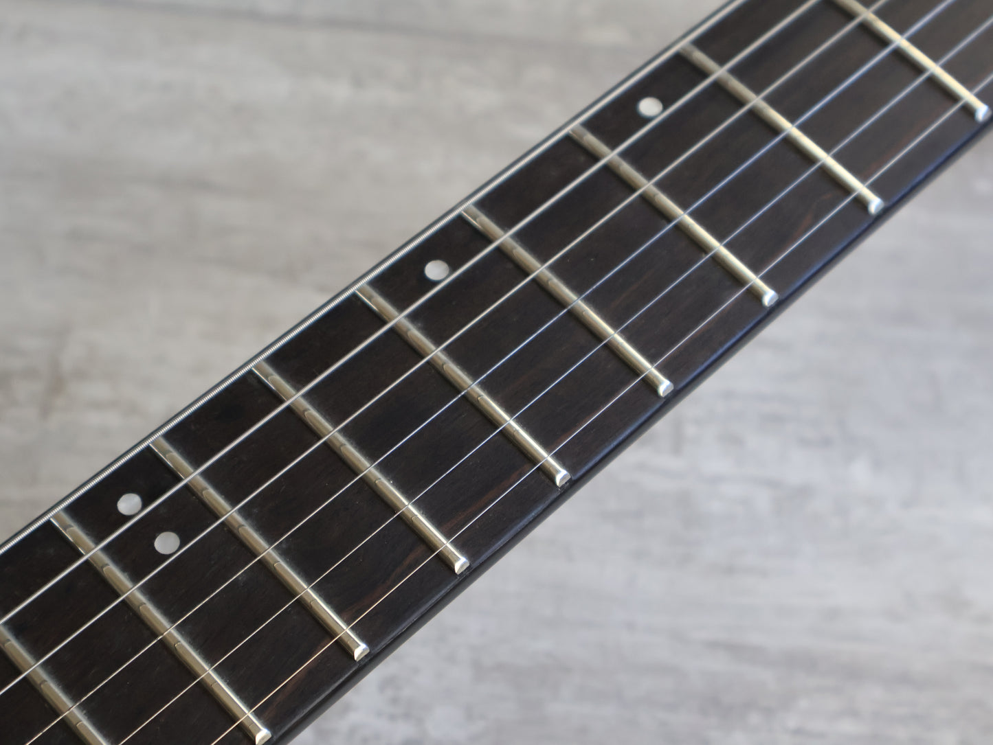 A pair of direct mount brawny Seymour Duncan® humbucking pickups—JB™ (bridge) and ’59™ (neck)—power this axe, delivering powerful punch while retaining clarity with enhanced note definition, a critical component for modern metal. This instrument is also equipped with single volume and tone controls plus five-way blade switching to tweak and refine tone, and a recessed Floyd Rose® 1000 Series double-locking tremolo bridge system for improved tuning stability.