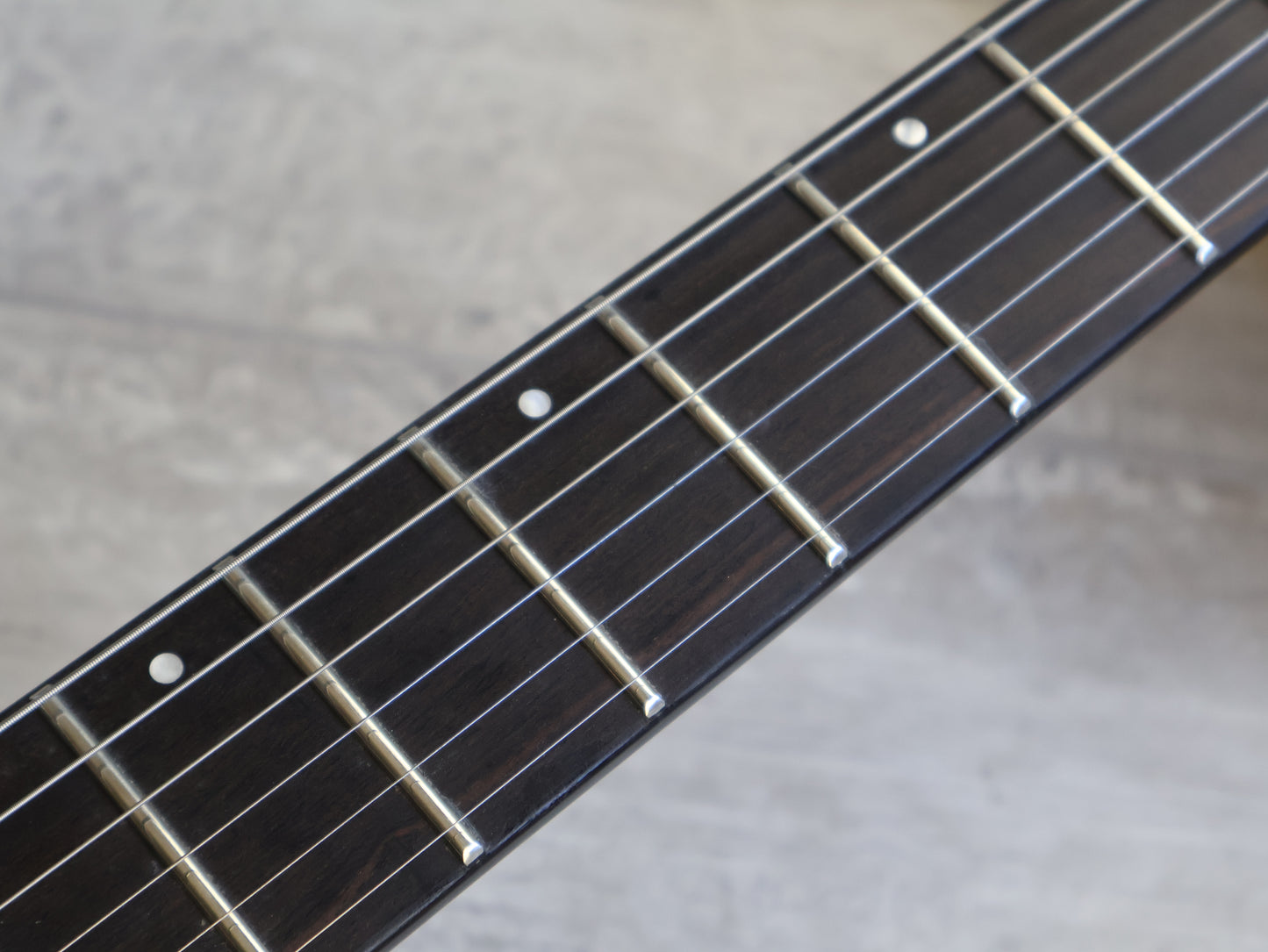 A modern metal machine, the Pro DK2 Ash features an ash body and a graphite-reinforced bolt-on maple neck with a sculpted shredder’s cut heel for easier access to the upper frets. A hand-rubbed satin finish on the back of the neck provides greater playing comfort, while a heel-mount truss rod adjustment wheel allows for quick and convenient neck relief tweaks. Featuring 24 jumbo frets and offset pearloid dot inlays, the 12-16 compound radius ebony fingerboard is the ideal platform for heavy chording and fast, ripping solos.