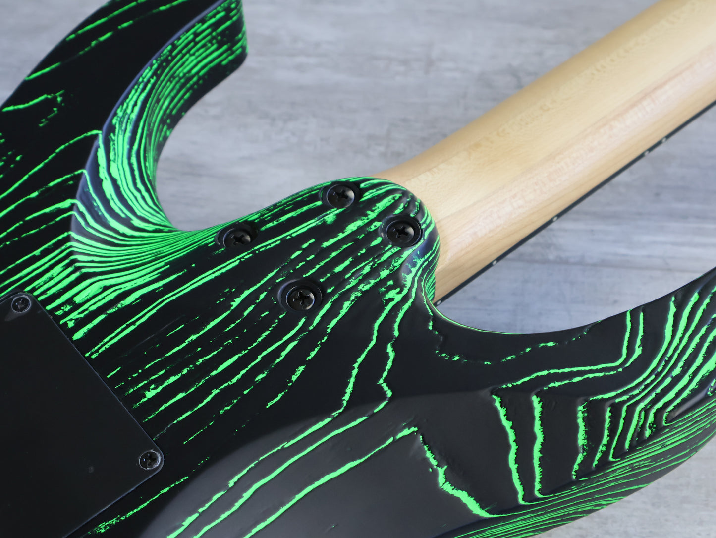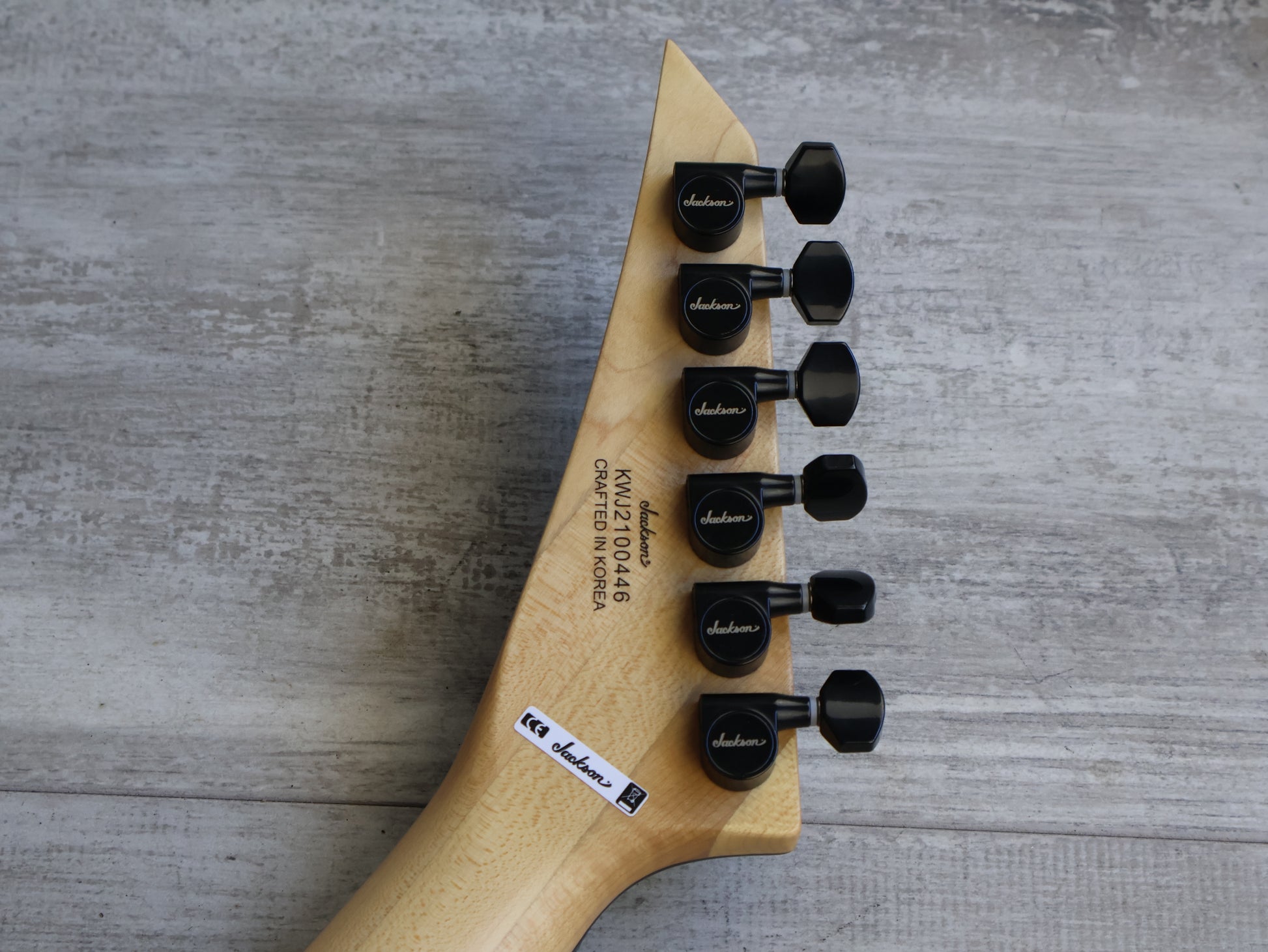 Boasting Jackson’s distinctive style, the Pro DK2 Ash is available in either a Baked White or Green Glow finish with matching pointed 6-in-line headstock and all-black hardware, including sealed die-cast tuners and Dunlop® dual-locking strap buttons.