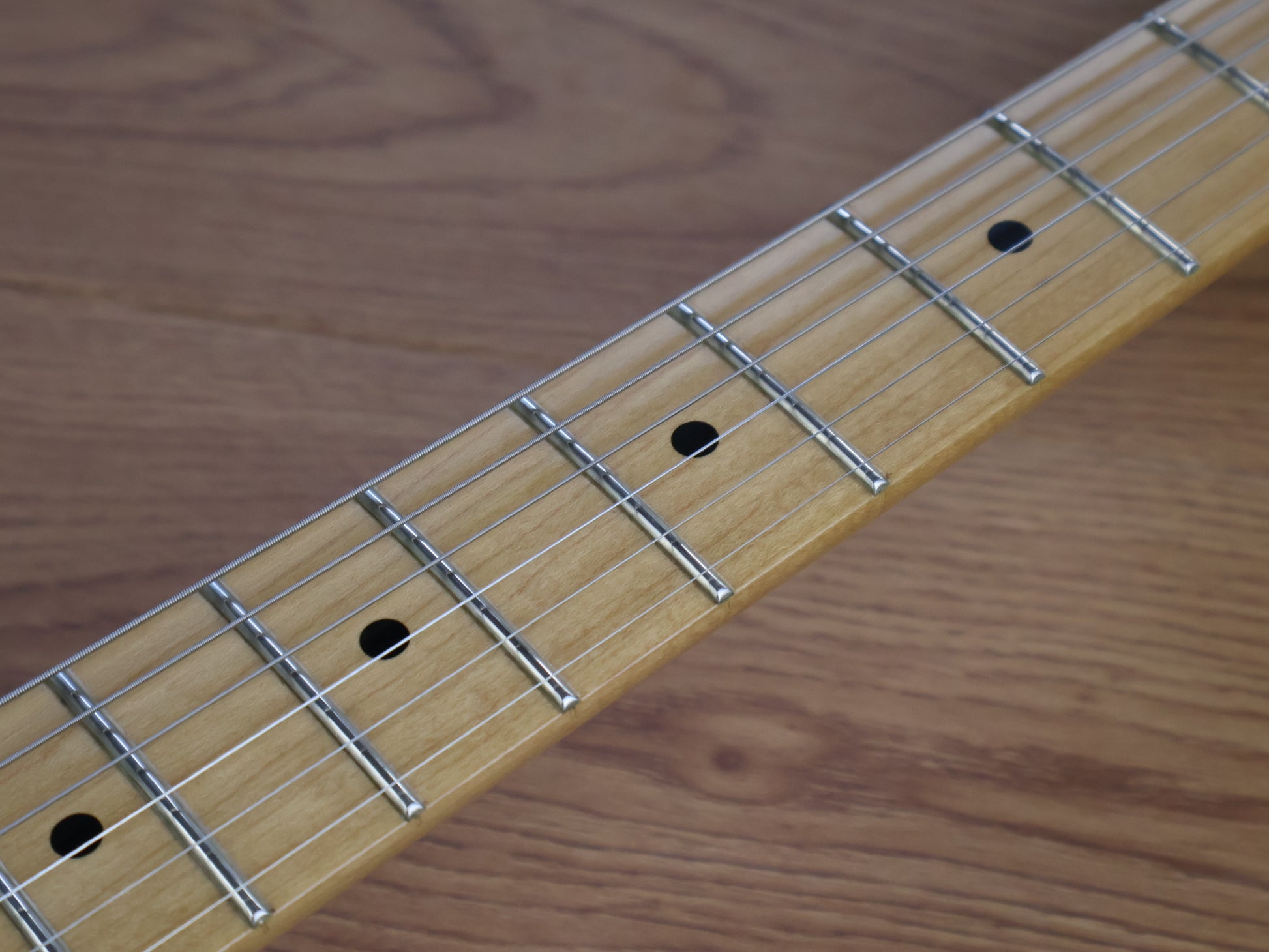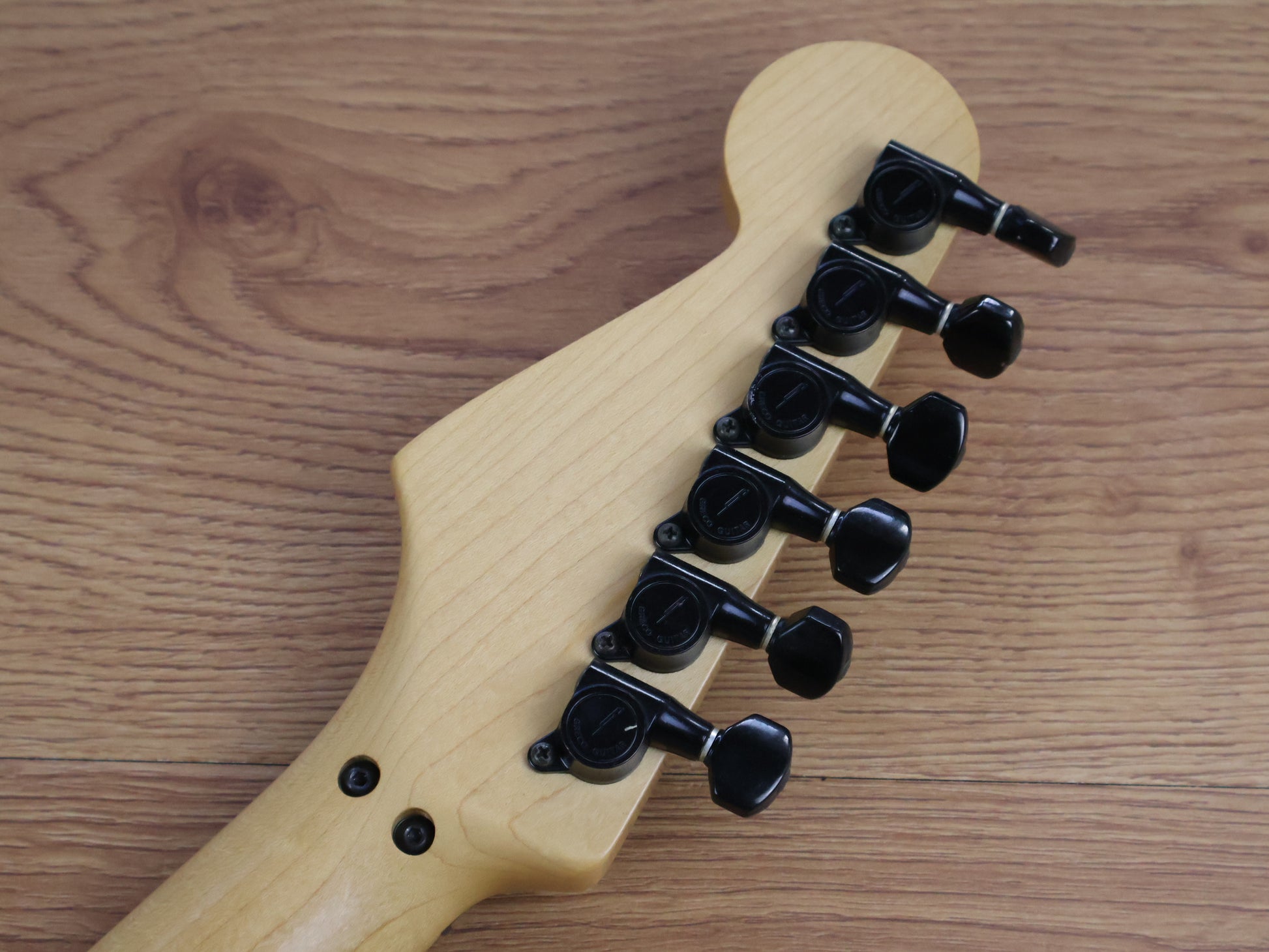 Imported from Japan with what we're told is an ESP neck and body made by the Tokai factory in Hamamatsu and assembled in-house by our tech Michael from Okami Guitarworks. Solid body with a nice 24 fret maple neck (44mm nut width, 628mm scale length), weighs 3.5kg's. Loaded with Dimarzio Air Classic and a Cruiser controlled by a three-way toggle and master volume control along with Greco branded tuners and a Greco G Force bridge.