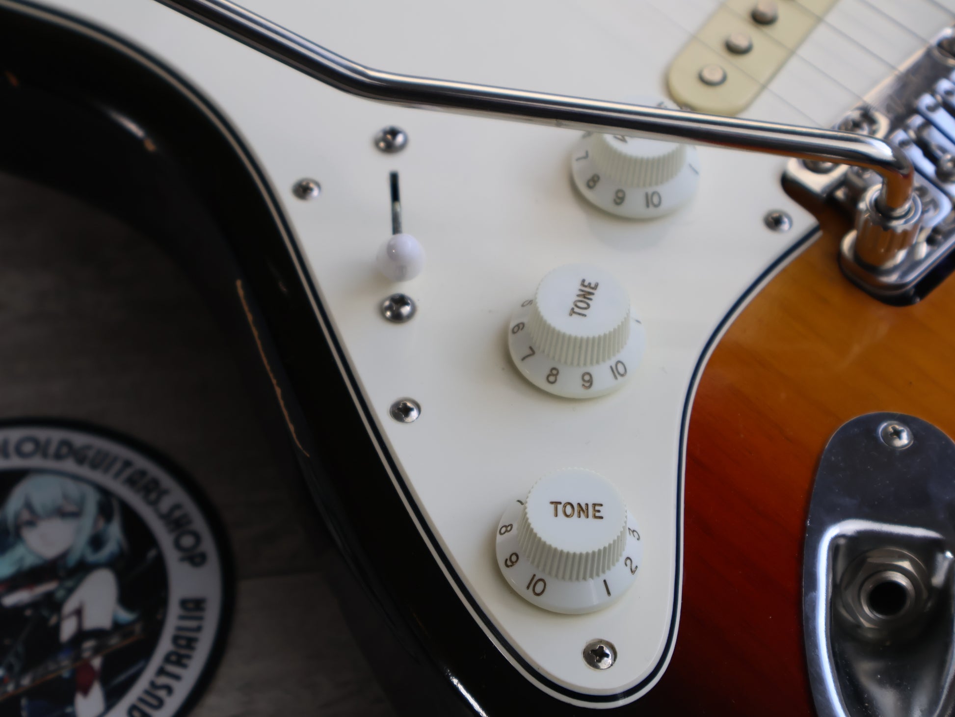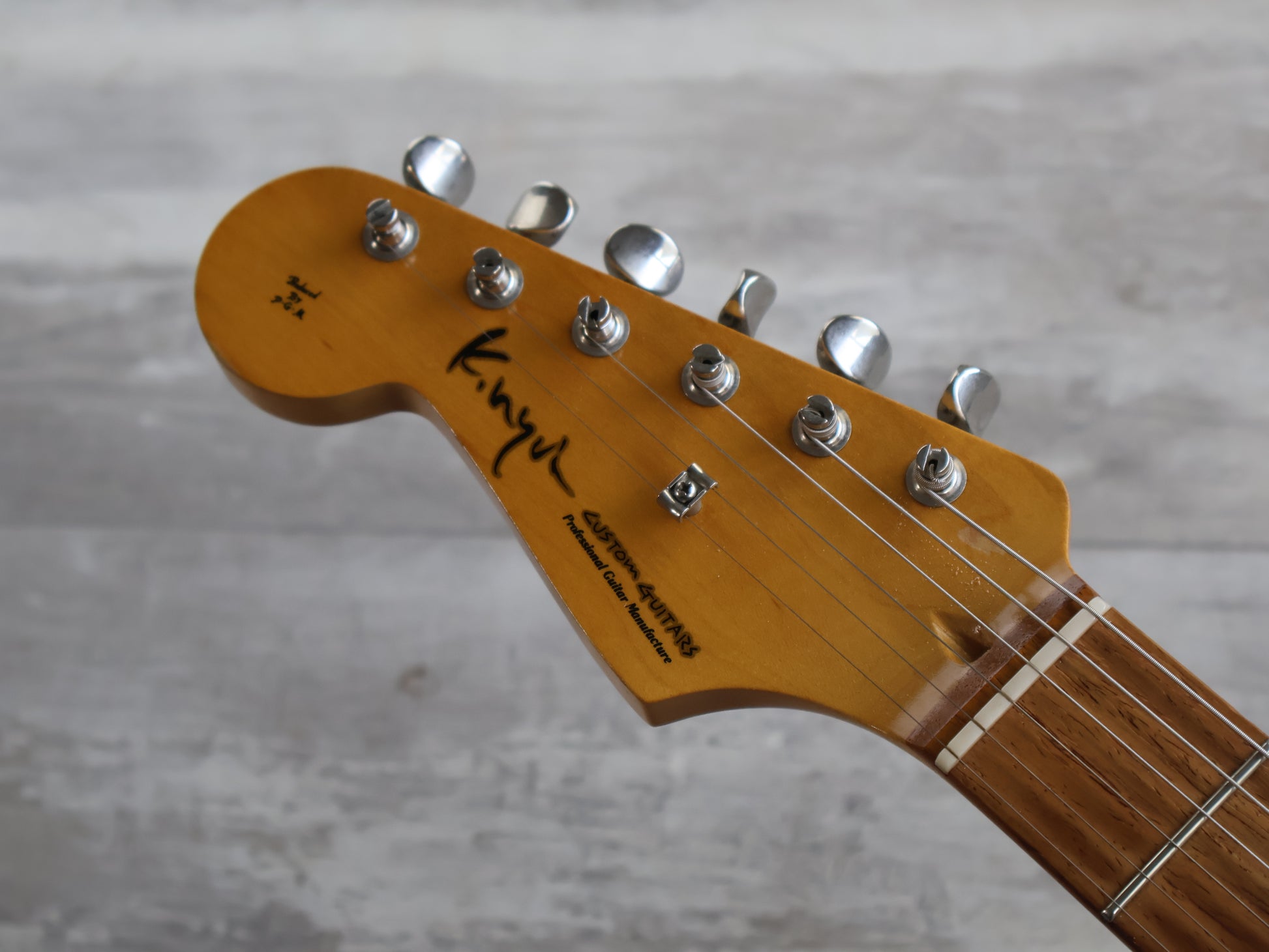 Traded in at our Gladesville store. K.Nyui guitars are high end custom shop models made by PGM in Japan and sold in very limited numbers. This is a super rare LH model '62 style Stratocaster with a nitro 3TS finish on a two-piece alder body bolted to a C profile maple neck with a 21 fret rosewood fingerboard, it weighs 3.4kg's. This one is loaded with some generic ceramic pickups (instead of the original Lollars) and an upgraded Vegatrem system.