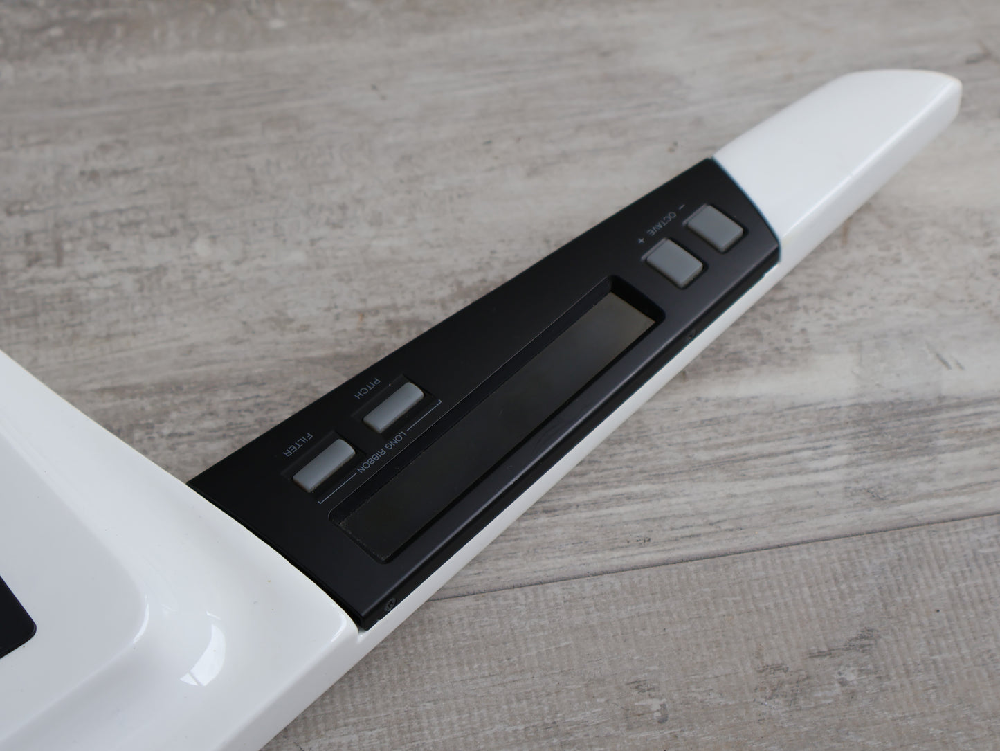 Now, thirty years later, the RK has been resurrected. Although beautiful curved surfaces have been added, the essence of the original and very popular design is unchanged. What had been a somewhat large and heavy body has been made more compact and lightweight thanks to modern components such as a slim keyboard. While the original required an external sound module, the new RK-100S contains a built-in analog modeling sound generator.