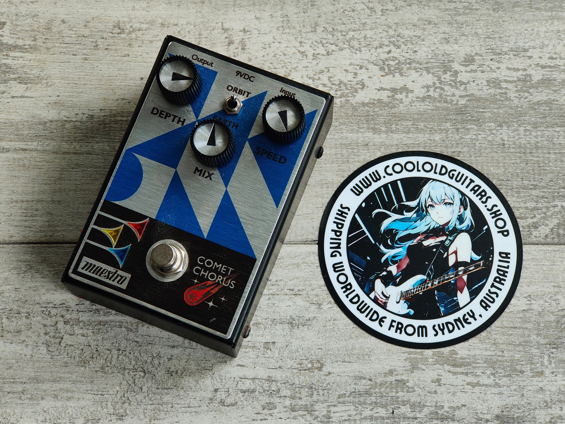 The Maestro Comet Chorus pedal uses iconic analog bucket brigade device (BBD) technology to deliver warm, classic chorus tones. This all-analog pedal boasts a Mode toggle switch for increased sonic versatility. The Earth mode provides an optimized, shimmering chorus effect. The Orbit mode adds some amplitude modulation to the chorused sound to more accurately simulate the sonic complexities of a rotary speaker. An internal trim pot lets you adjust the level of the rotary speaker Orbit effect to taste.