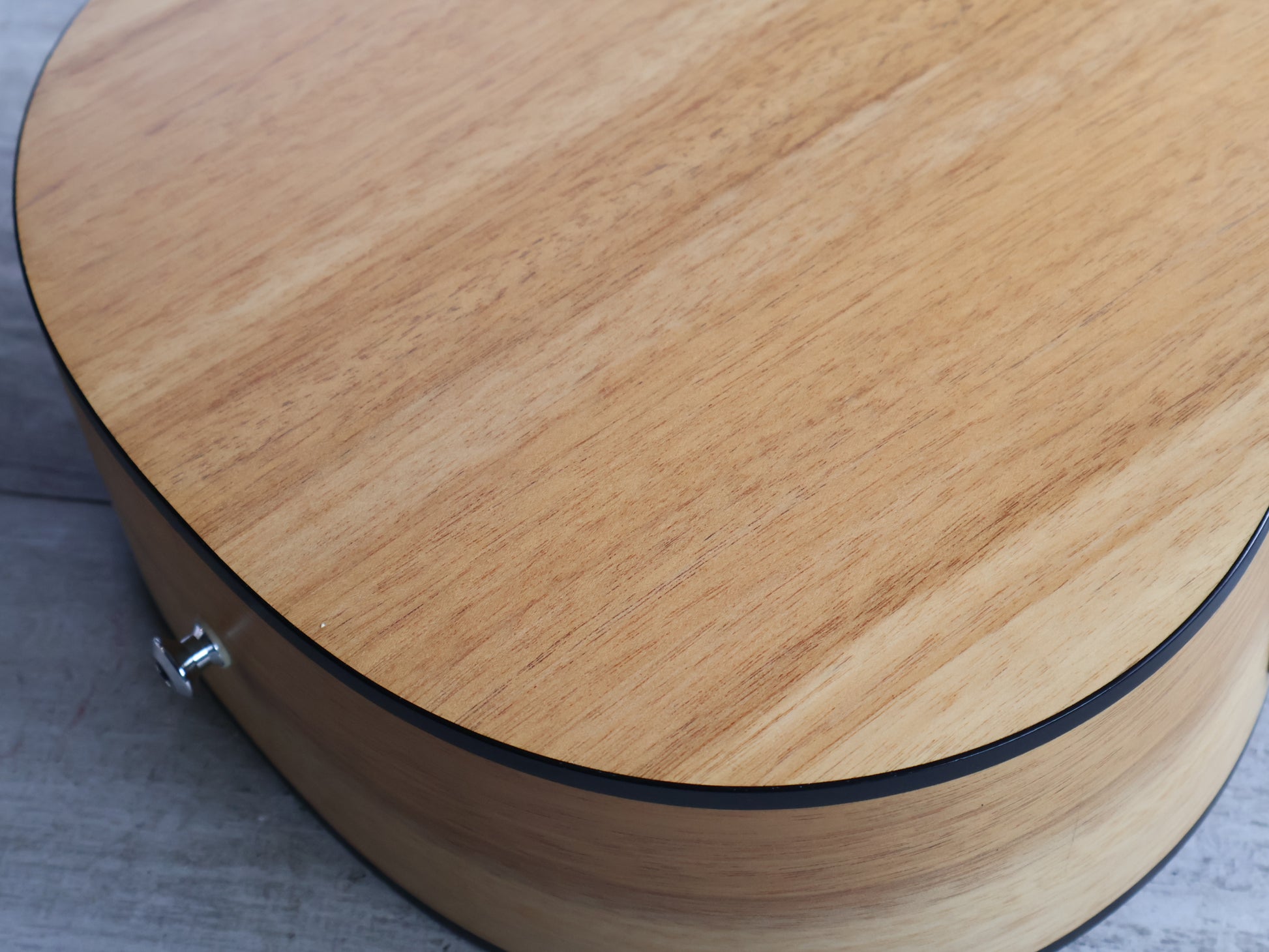 The build quality is superb, delivering an incredible sounding guitar in a small package. The top is solid Sitka Spruce, a clear and balanced tonewood with huge projection. Solid Queensland Maple back and sides give the EM-12 warmth, clarity and an even response from lows to highs. The overall tone is crisp, clear and punchy and presents itself as a brilliant performance guitar or as a guitar that stands on its own acoustically.