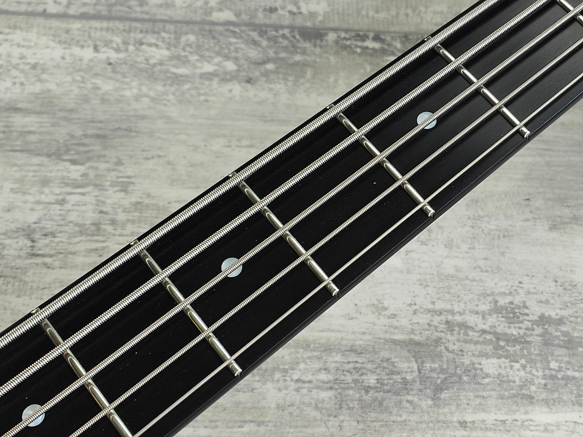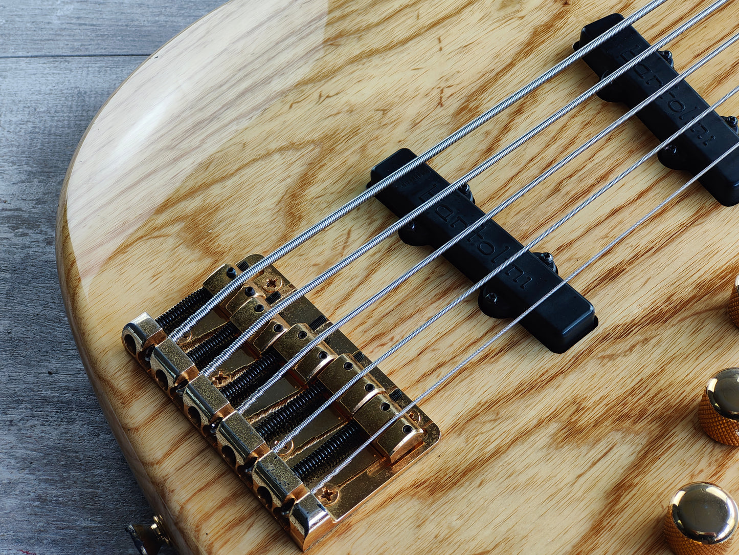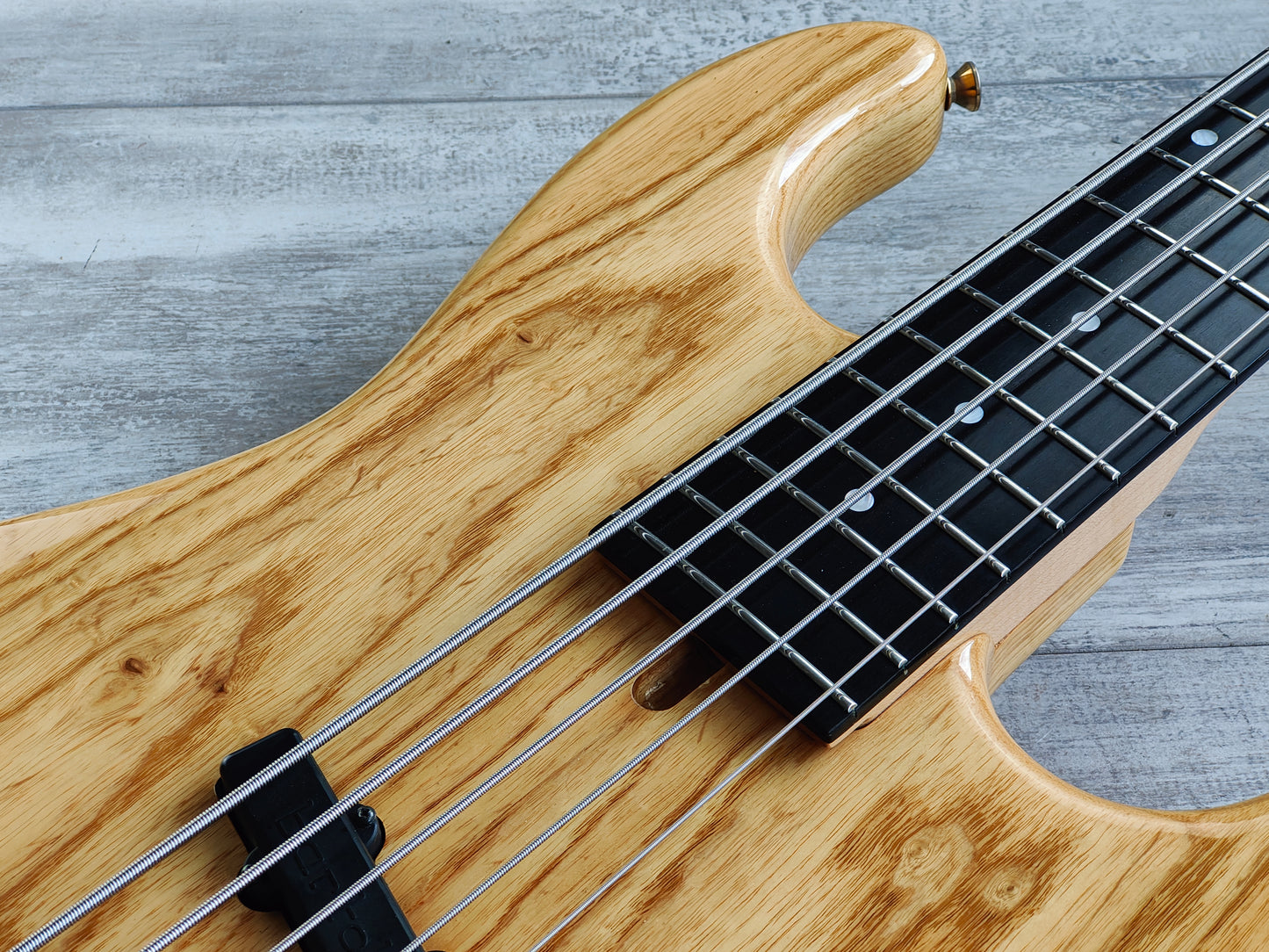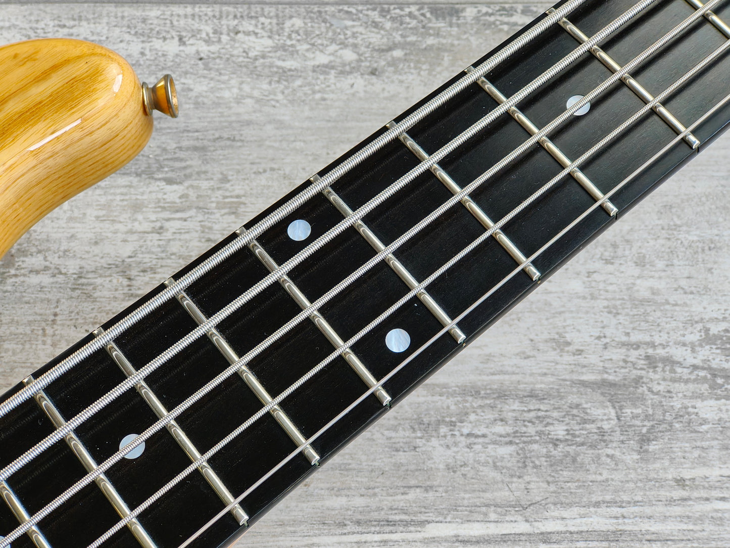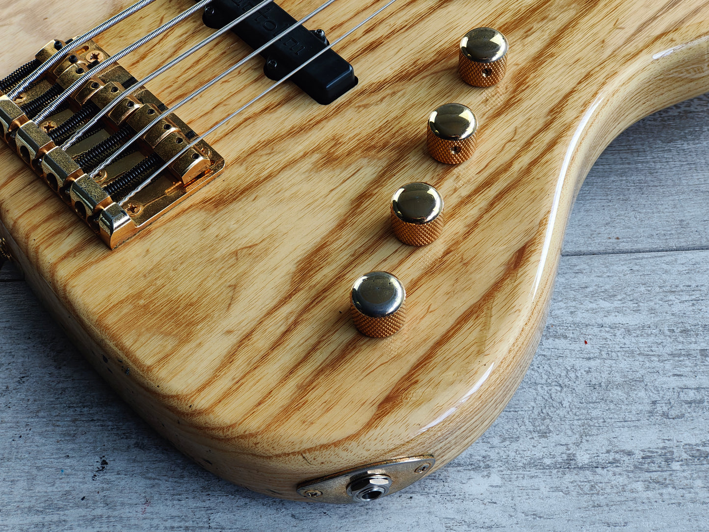 Made in the 2000's, the JJ-5 model was a professional grade 5-string Jazz Bass. With a stunning two-piece ash body bolted to a maple neck with a classy ebony fingerboard (48mm nut width, 34" scale length), it weighs 4.5kg's. Looks to be factory loaded with Bartolini pickups along with an active Bartolini EQ system.