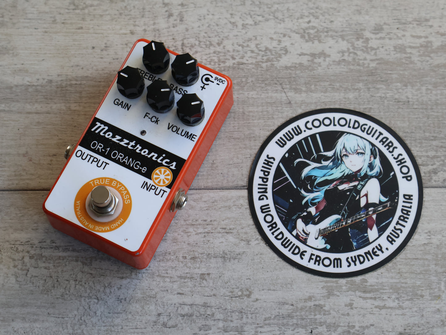 There are a few iconic valve guitar amps that we at Mozztronics adore. Apart from the british 800 series amps, the AC amp used by the Beatles & Brian May, the American '59 bass amp loved by guitarists, the other is an amp named after a fruit and a colour. We have used the 72 graphic version and made our emulation into a solid state footswitchable pedal, which we have named the "ORANG-e" in honour of its parentage. ORANG is malay for "man", and "man" does this pedal bump & grind. This pedal is not a dirt pedal as such, it's our emulation of this classic amp. To do full justice to the original amp, and to get the maximum in tone versatility we included the full 2 knob tone stack and the FAC control in this pedal. A single tone control, or just a bass & treble control wasn't going to cut it with this pedal. The FAC control switches different inter-stage coupling capacitors for different Frequency response. GAIN controls the amount of gain from the first stage, BASS and TREBLE are a classic 2 knob tone stack as found in the original amp, and F-Ck provides for different Frequency response with the switchable Ck coupling capacitors . VOLUME adjusts the overall volume out of the pedal. As with the amplifier this pedal replicates, classic 70s rock sounds live here, and turn up the gain for added rawkus-ness.