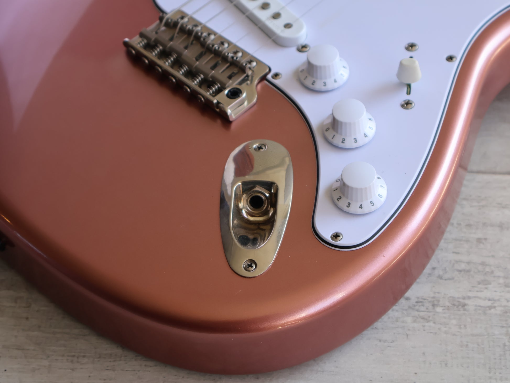 The Silver Sky comes with the option of a rosewood or maple fretboard. The maple fretboard option comes with the original 635JM neck shape, while the rosewood fretboard option has been subtly modified in the shoulders to feel more “rounded” in your hand. Both neck shapes were designed by researching vintage instruments and Mayer test-driving guitars on stage to find what felt right. The fretboard radius on both options is 7.25”.