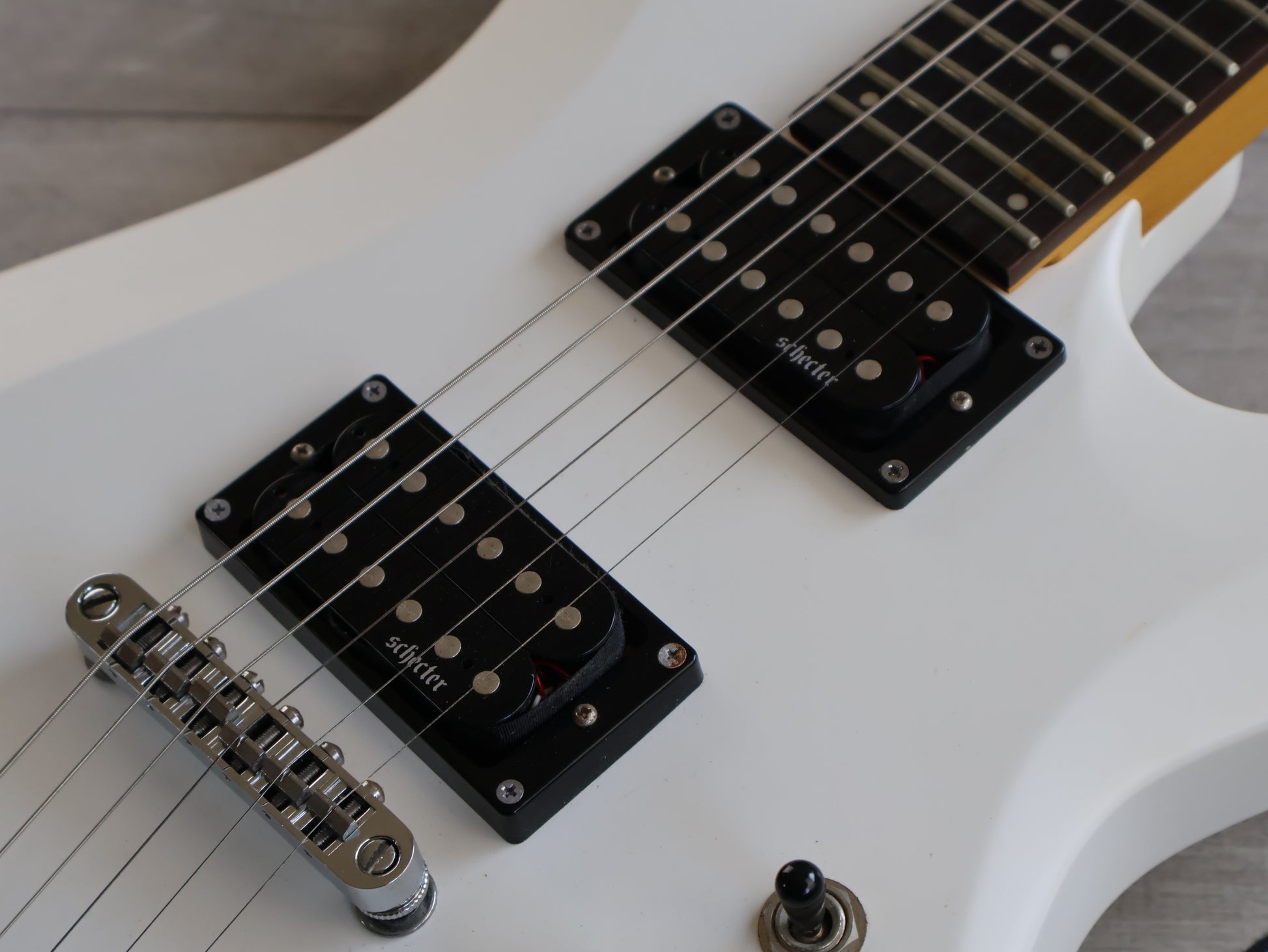 The body is made from Basswood, combined with a maple neck for brightness. Shecter have fitted some of their passive Diamond Plus pickups and their fantastic tuners to ensure the guitar stays in tune.