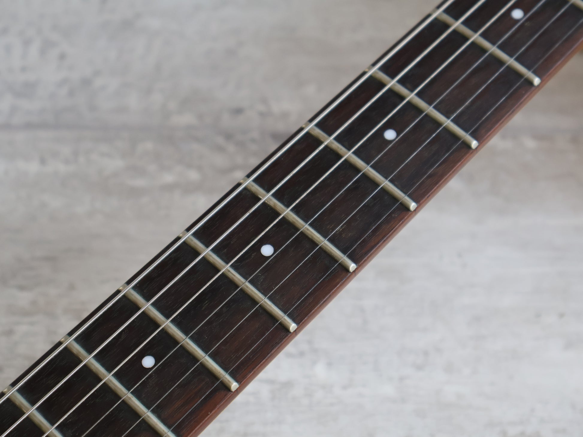 The neck has a rosewood fretboard with 24 X-Jumbo frets that are easy to play. The body has a smooth satin metallic light blue, contrasting nicely with the chrome hardware. The Schecter C-6 deluxe is a simple styled guitar with hidden depths that you will find as your guitar playing develops.
