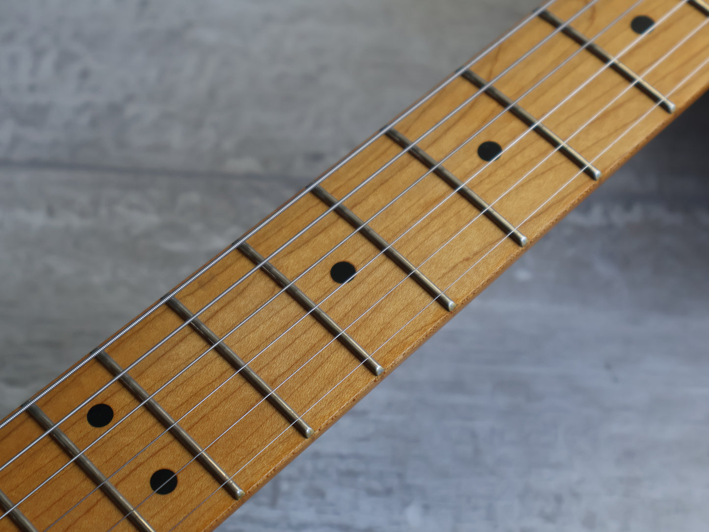 Player-friendly refinements of this commemorative model include a slim and comfortable “C”-shaped neck profile for an easy playing feel, vintage-style tuning machines and 6-saddle floating bridge and tremolo for authentic performance and style, and Fender-Designed single-coil pickups with alnico 5 magnets for familiar Jazzmaster tone.