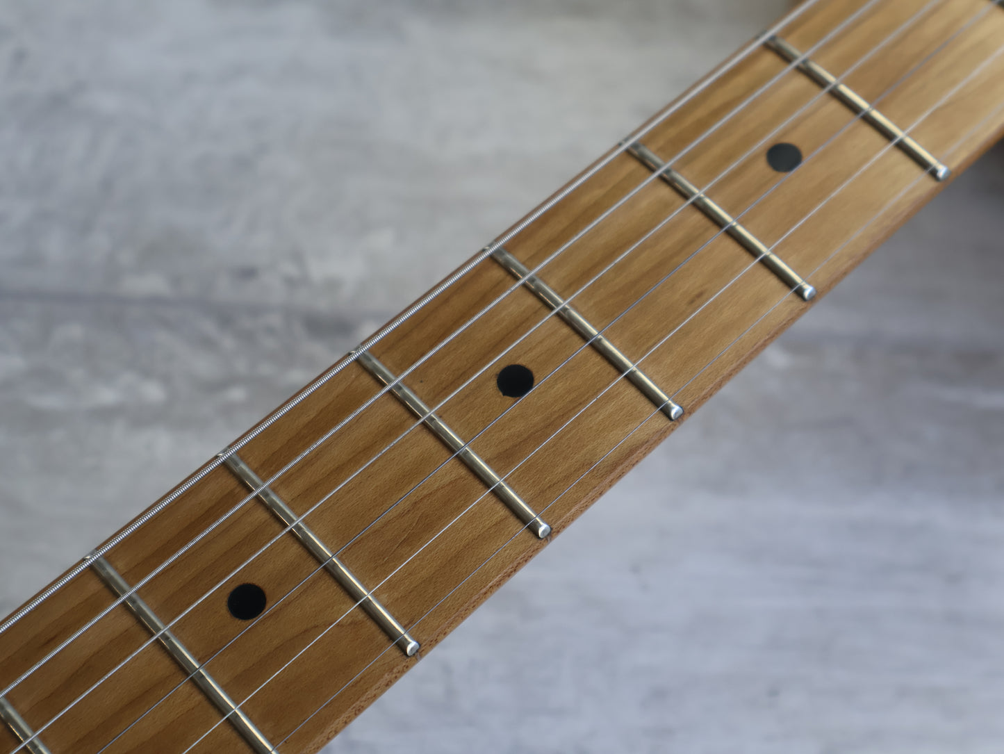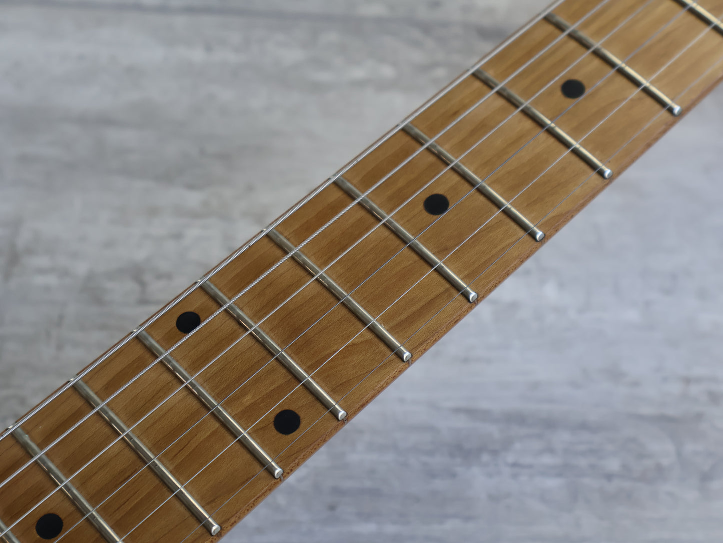 The Valentine combines the innovation and playability that Ernie Ball Music Man guitars are known for in a familiar yet modern design. Featuring a Mississippi Swamp Ash slab body, two pickups (humbucker in neck & single coil in bridge position, inside a humbucker casing), a 12dB push-push boost, a roasted maple neck/fretboard, and locking tuners, the Valentine has become a classic in its own time.