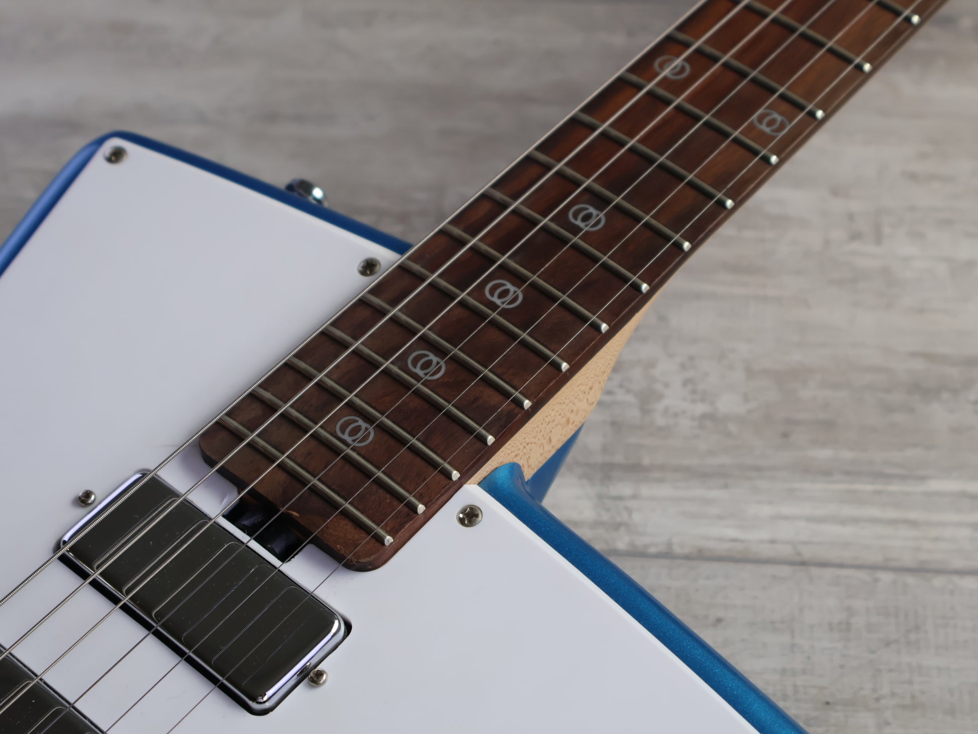 The Sterling STV60 St. Vincent offers quite a few features of the Ernie Ball Music Man model with a sharpened pencil. A very versatile and playable instrument, it features a bevel-top African Mahogany body, rock maple neck and Rosewood board with St. Vincent signature fretboard inlays.
