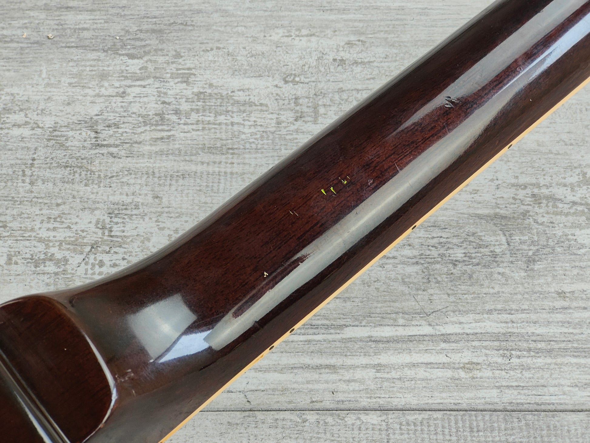 With the famous "Love Rock" insignia on the headstock, the LS-100 features a lacquer Brown Sunburst finish on a mahogany body with a solid maple cap, slim 60's mahogany neck with an 18 degree pitch angle, a 22 fret rosewood fingerboard (12" radius, 44mm nut width), it weighs 4kg's. Loaded with the original factory loaded Dimarzio PAF in the neck position and a Dimarzio DP153 "FRED" in the bridge position along with the original PCB mounted pots and wiring.