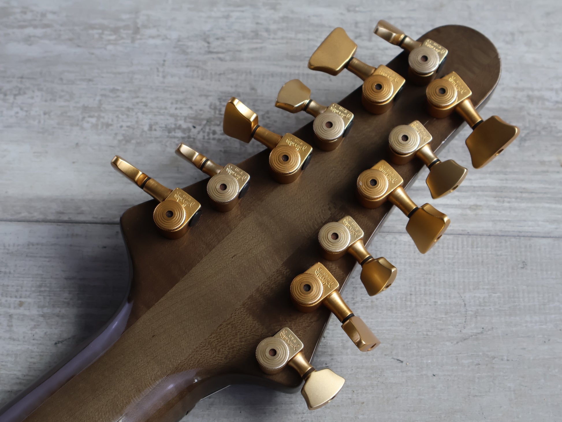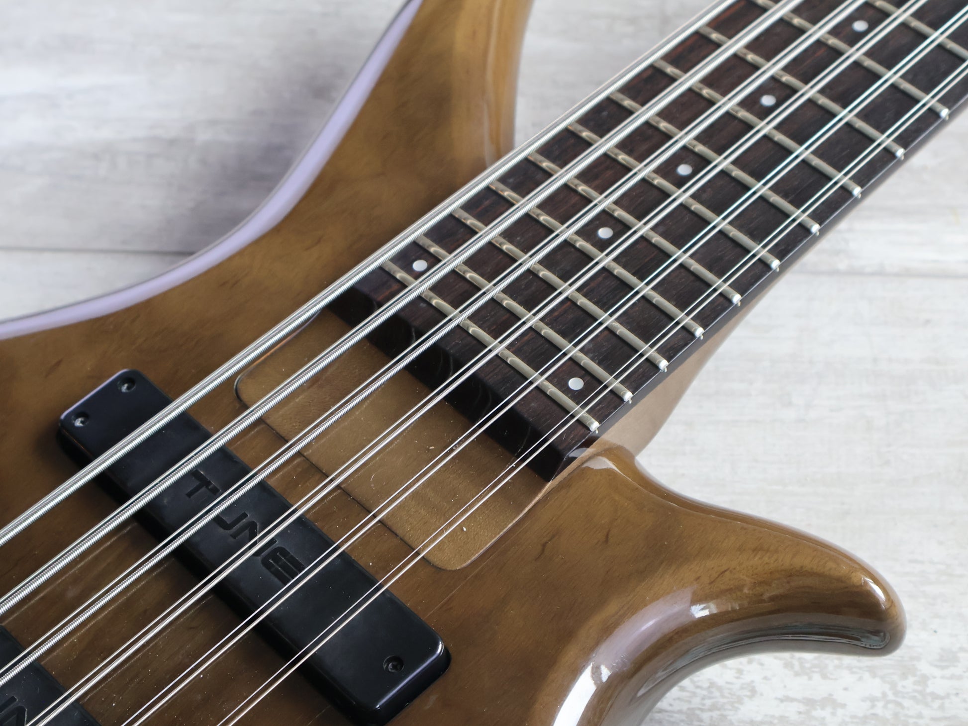 Custom built in Japan by Tune Guitar Technology in recent years, this is a completely custom ordered professional grade bass with every single box ticked. Compact solid ash body bolted to a three piece maple neck with a 12-string rosewood fingerboard (60mm nut width and 34" scale length), it weighs just over 5kg's. Loaded with a smooth tremolo system, Tune branded active pickups, Sperzel locking tuners and an active three-band preamp system.