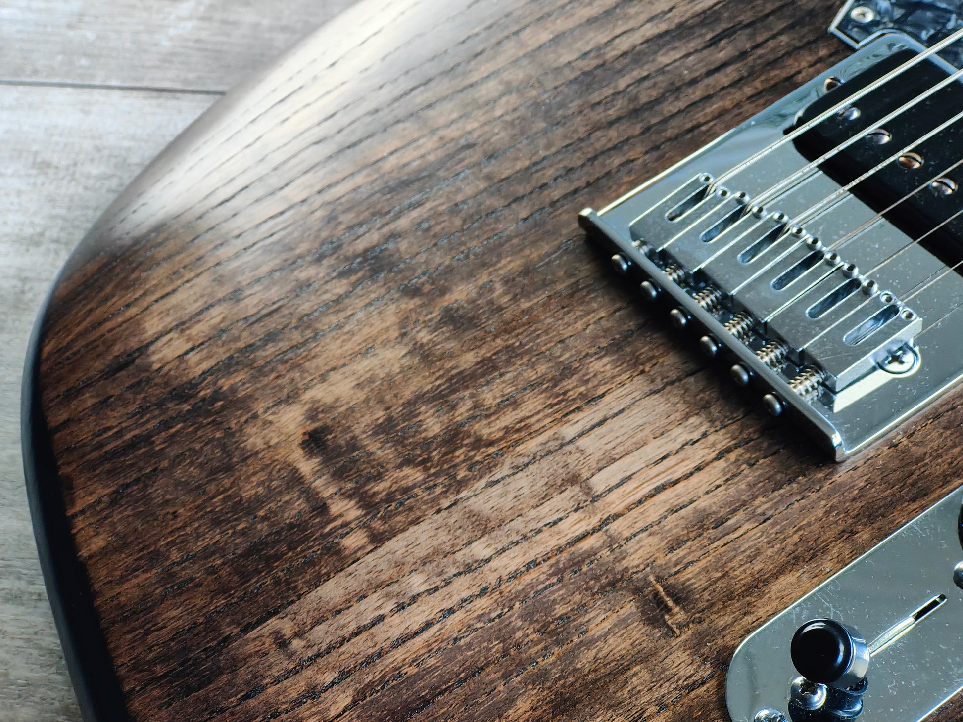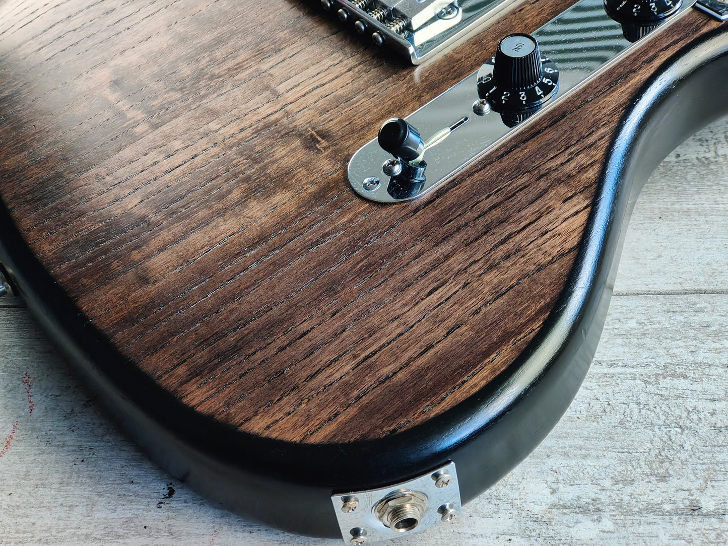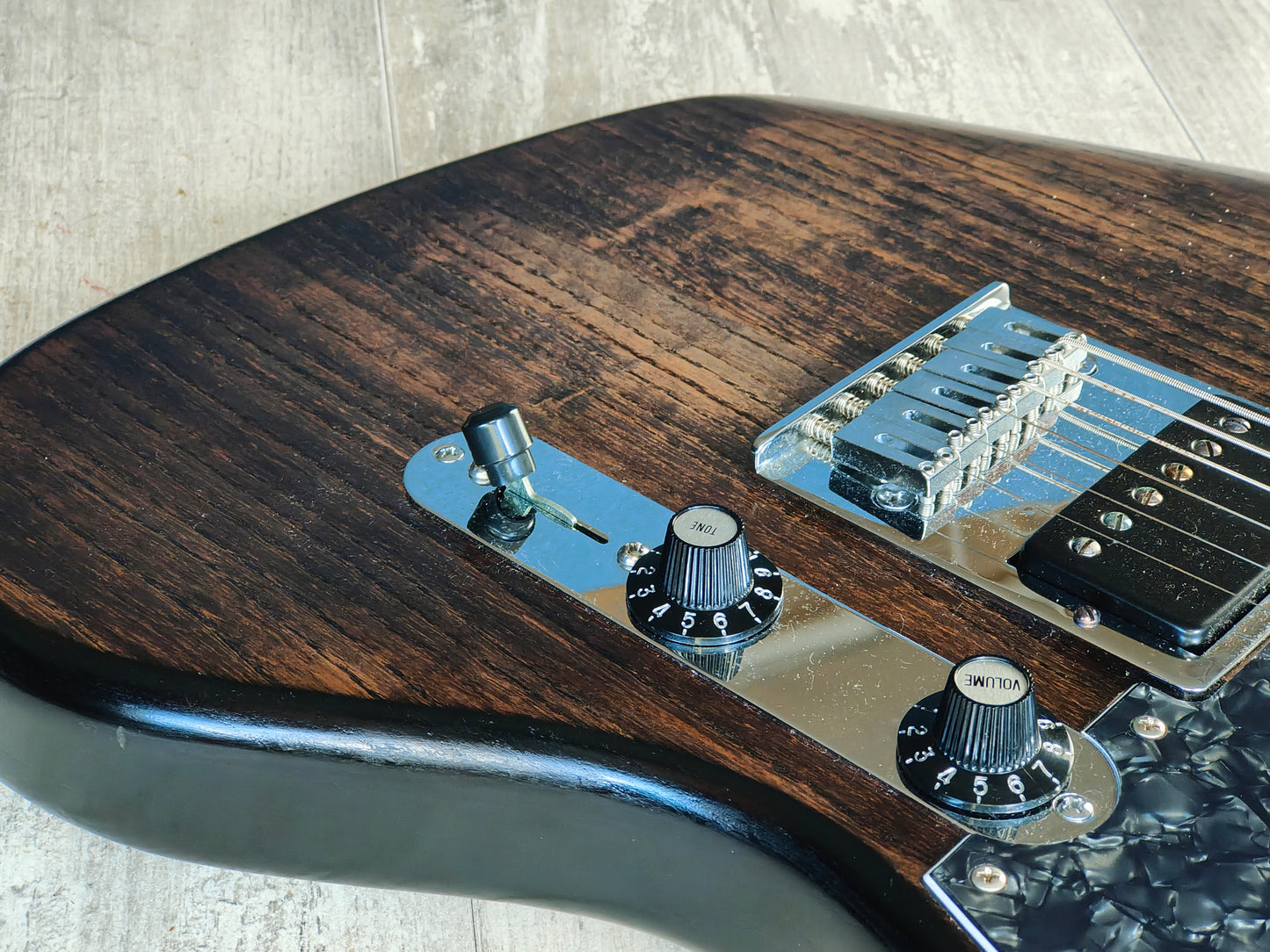 A full Warmoth build assembled by a very talented local amateur tech that we've known for a while. Featuring an ash "Telemaster" body with HSH routing bolted to a Warmoth Tiltback roasted maple neck (standard profile) with 6100 stainless steel frets. Loaded with Bareknuckle Polymath humbuckers, CTS pots with coil split push/pull on the tone control, a Gotoh HT bridge and Planet Waves auto-trim tuners. Weighs 4kg's.