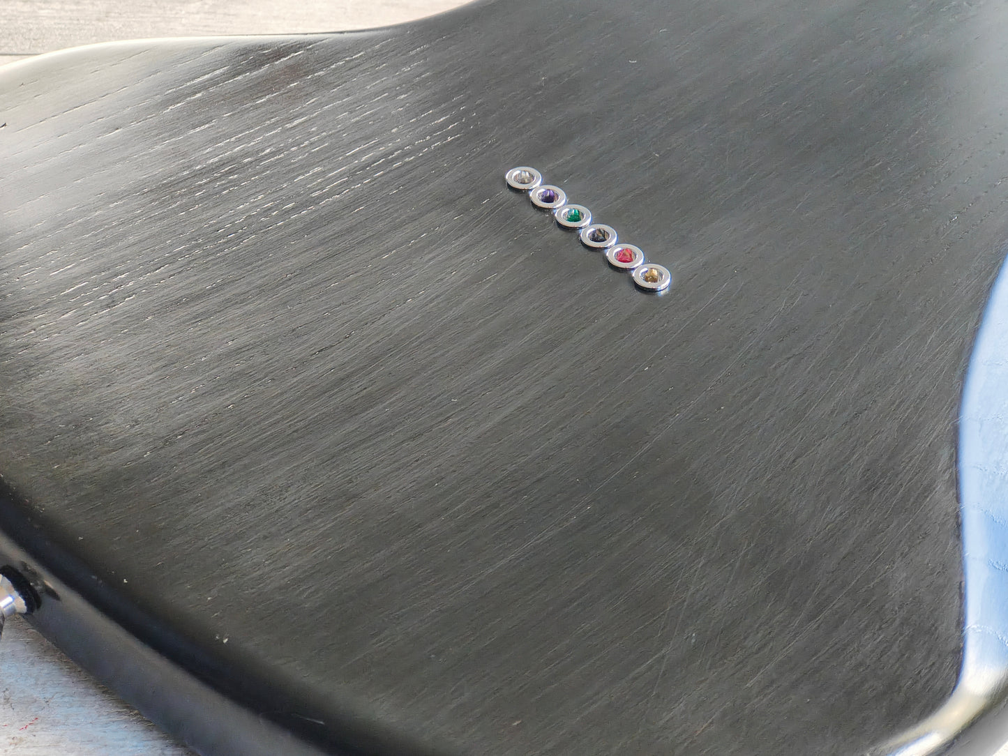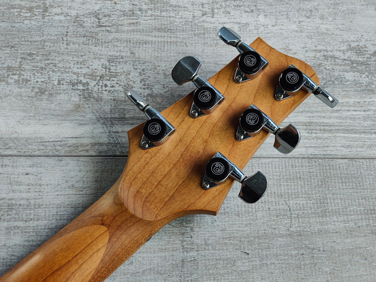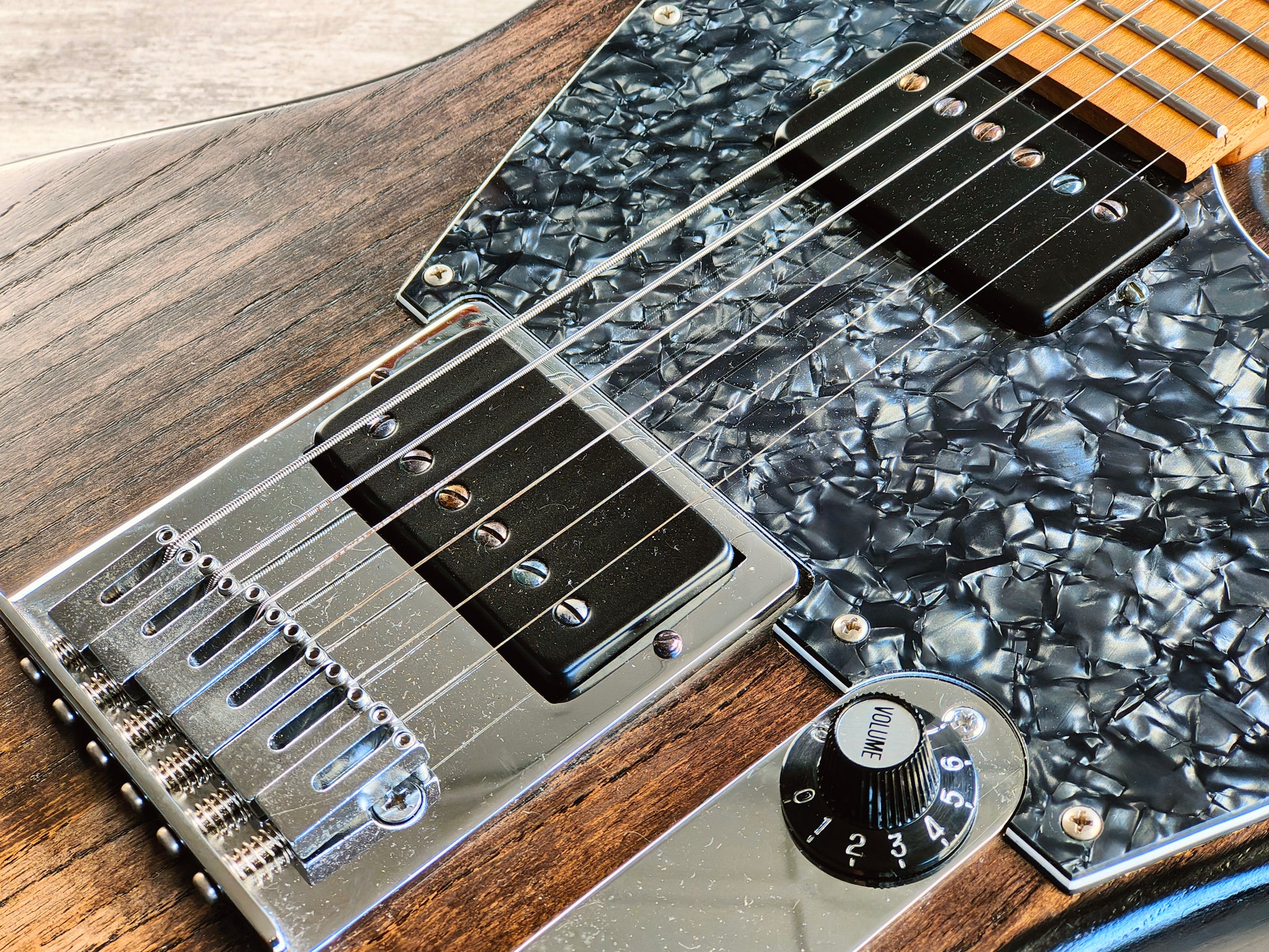 A full Warmoth build assembled by a very talented local amateur tech that we've known for a while. Featuring an ash "Telemaster" body with HSH routing bolted to a Warmoth Tiltback roasted maple neck (standard profile) with 6100 stainless steel frets. Loaded with Bareknuckle Polymath humbuckers, CTS pots with coil split push/pull on the tone control, a Gotoh HT bridge and Planet Waves auto-trim tuners. Weighs 4kg's.