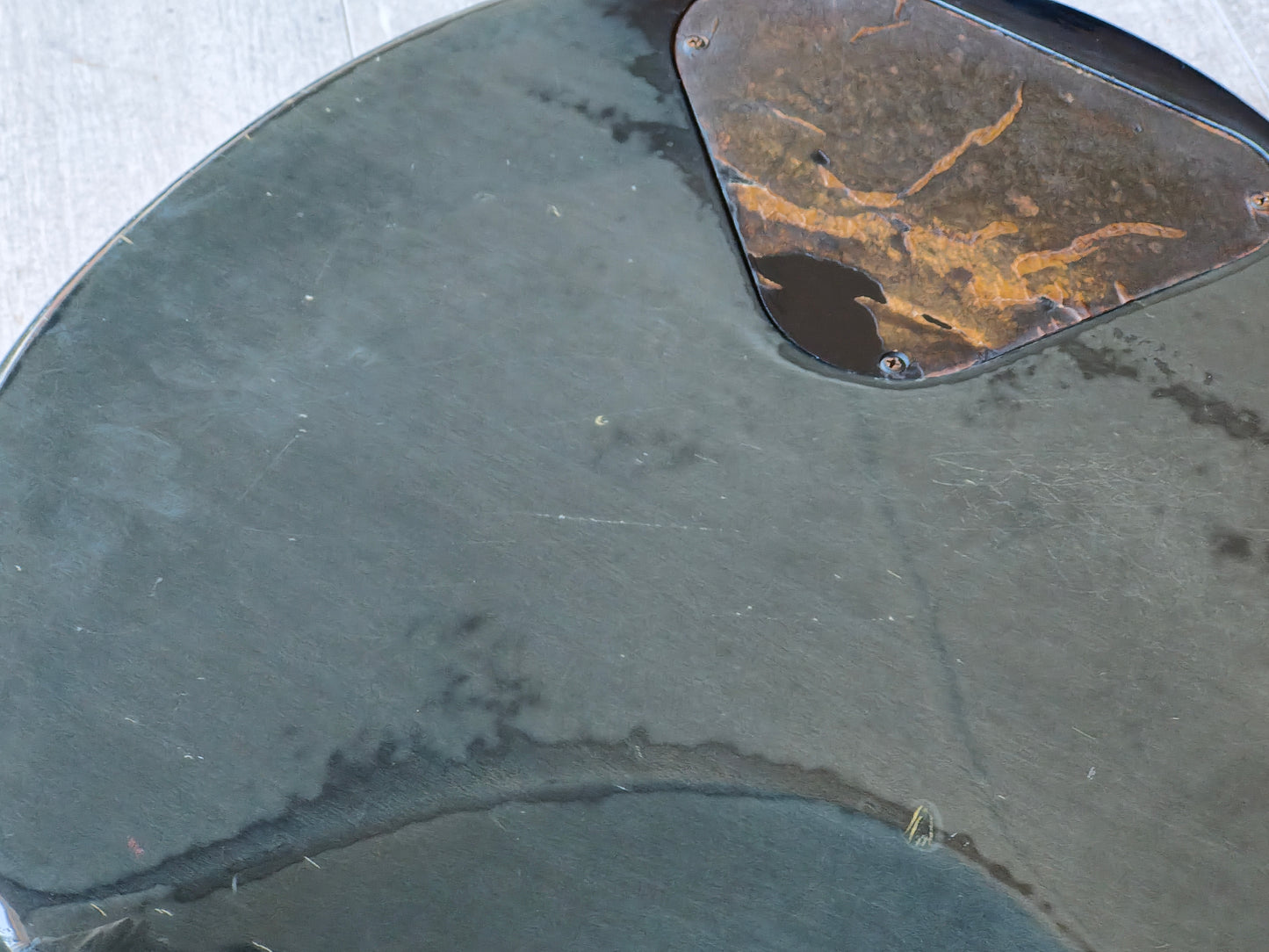 This one has some clouding on the finish that's faded the colour closer to black than blue and has a few bumps and dings from general use over 40 years. Received a professional setup and service prior to listing, plays well with a straight neck, adjustable truss and shiny frets with life left.